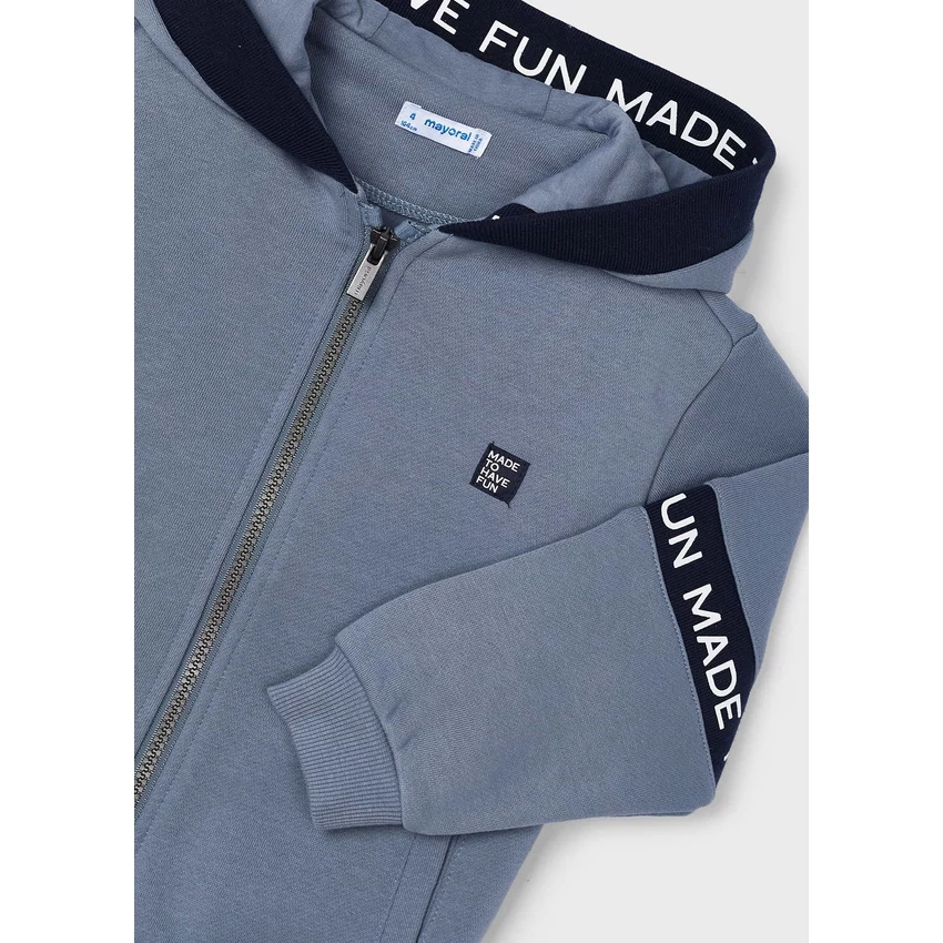 Mayoral sportos cipzáras pulóver kapucnival, zsebekkel, rugalmas finom pamutból készült, belül bolyhos béléssel, kapucnija és az ujjai felirattal díszítettek. | |