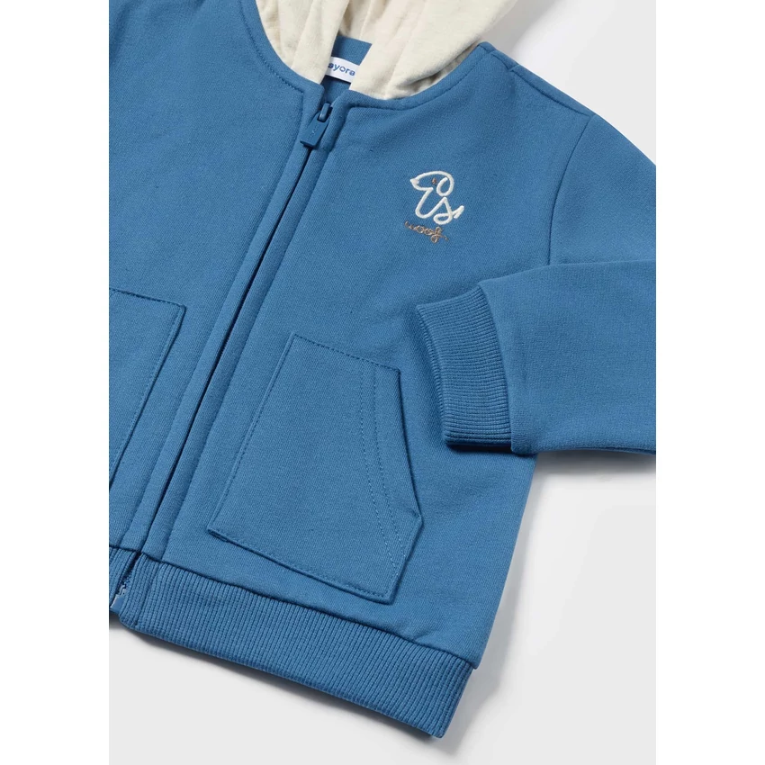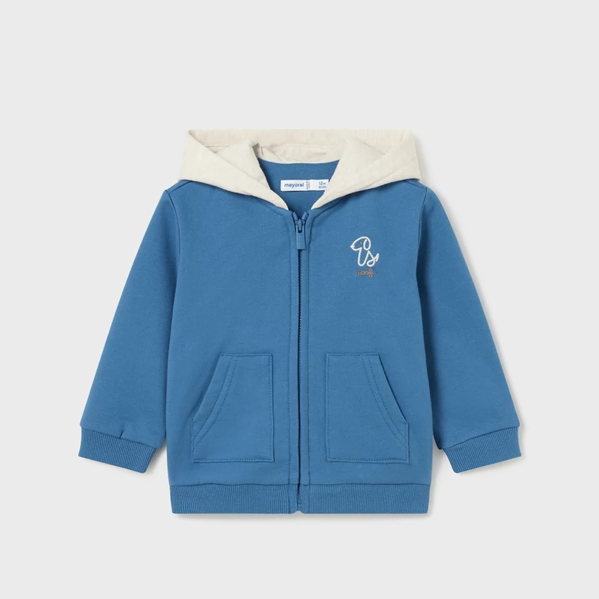 Mayoral cipzáras kapucnis pulóver apró kiskutya logóval a mellrésznél, elöl 2 kis zsebbel, csíkos kapucnival, passzéval az ujjain és alul, rugalmas pamutkeverék anyagból készült, kényelmes és praktikus viselet. | |