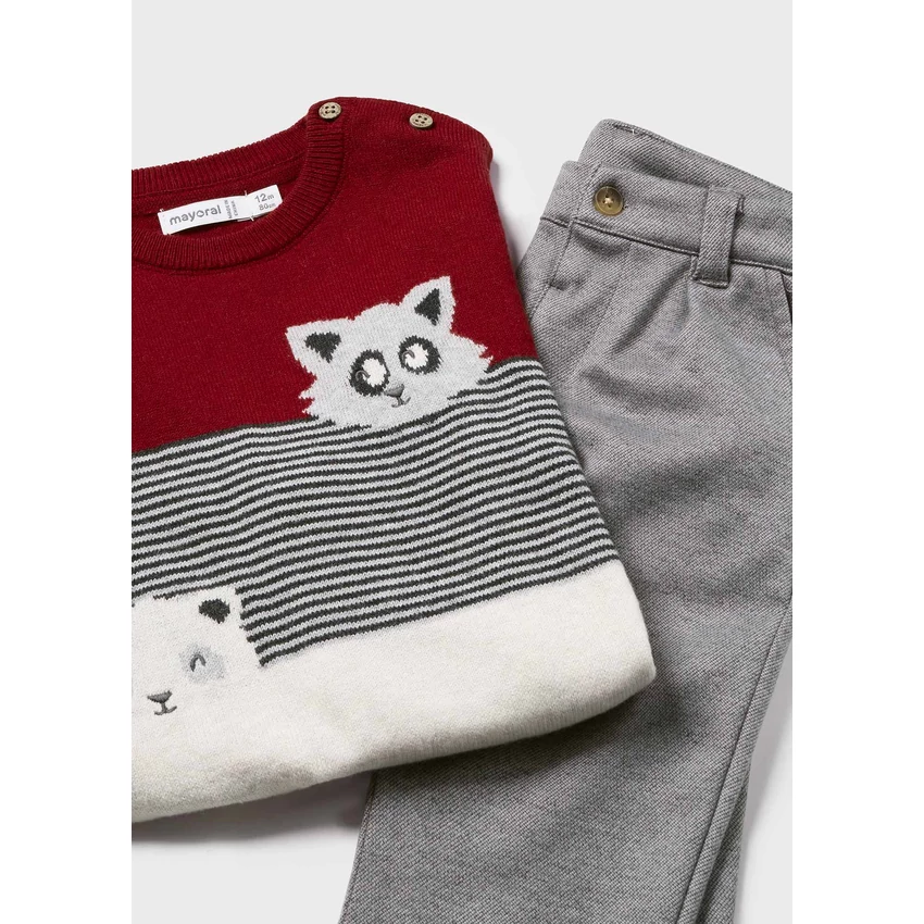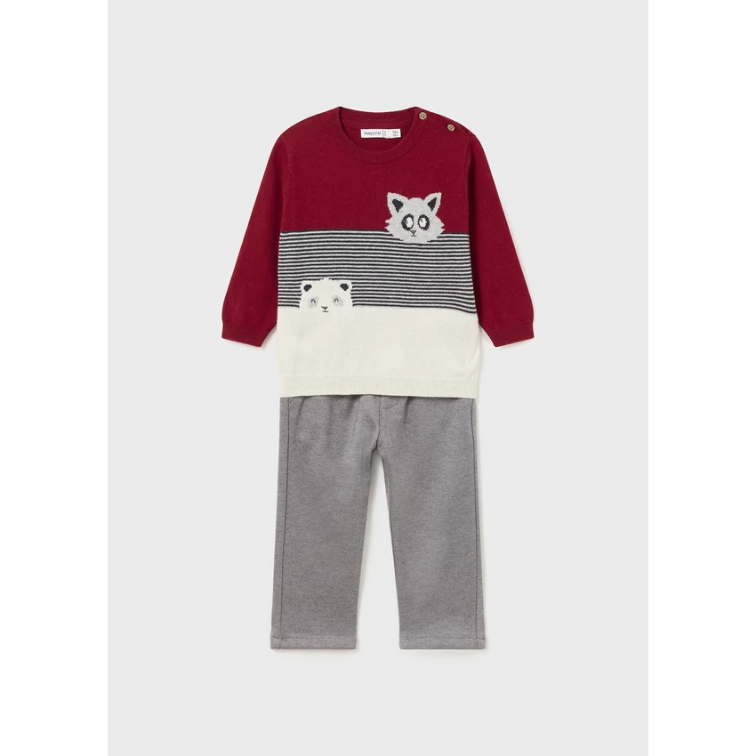 Mayoral csodaszép kétrészes elegáns pulóver és nadrág szett, ami egy macimintás puha finomkötött pulóverből áll, és egy hihetetlenül puha és rugalmas anyagú elegáns chinonadrágból áll, álltható derékrésszel, puha bolyhos béléssel rendelkezik. Extra gyönyörű termék. | |