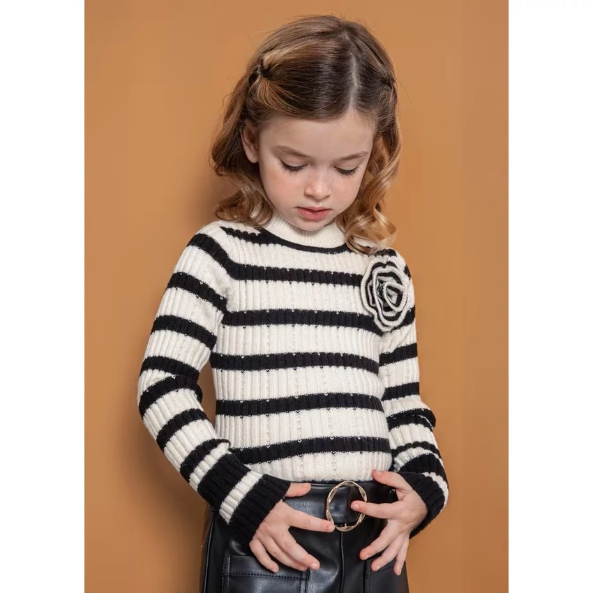 Abel&lula virággal díszített pihe-puha csíkos pulóver 2024 TÉL