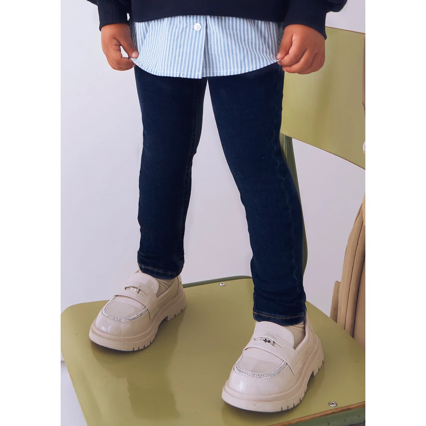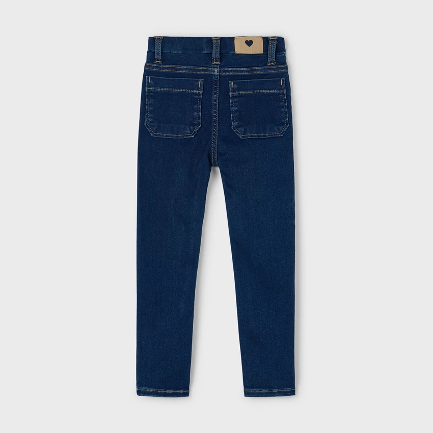 Mayoral gumis derekú nagyon rugalmas és puha anyagú skinny farmernadrág állítható derékrésszel, hátul farzsebekkel, apró szívecske logóval, cipzár és gomb nélküli derékrésszel. Extra sötétkék színű. | |
