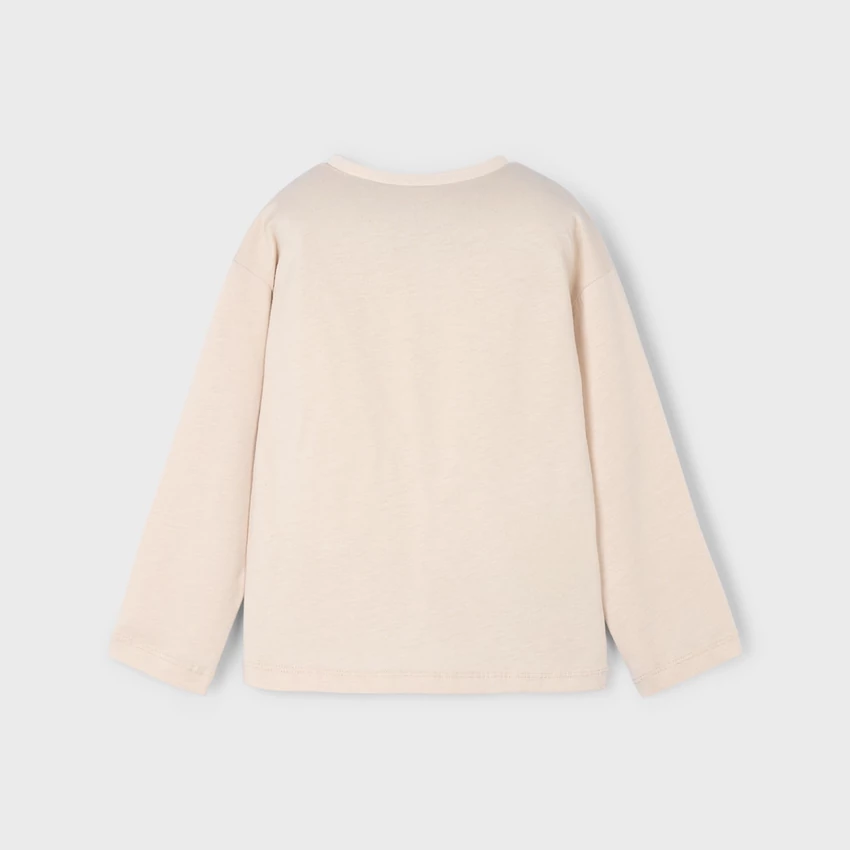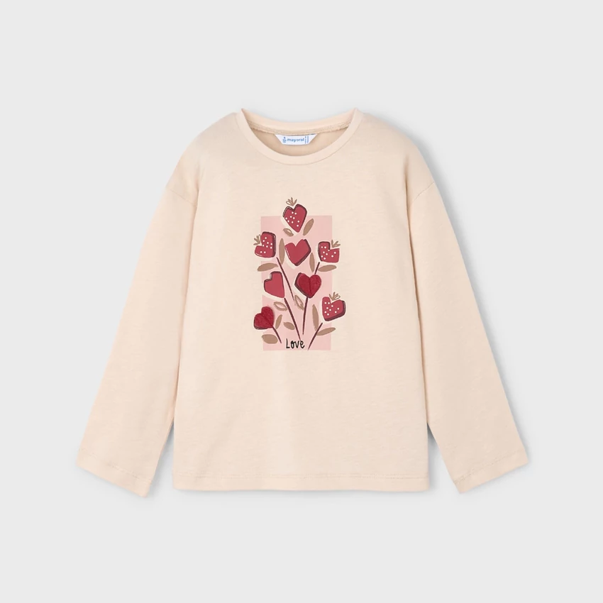 | Mayoral szívecskés-virágos mintával díszített hosszú ujjú felső puha pamutból készült, a minta közepén az egyik szív 3D-s apró kövekkel és szőrmével díszített. | |