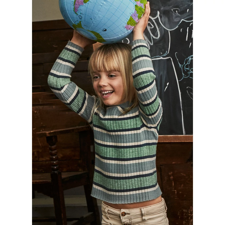 | Mayoral bordázott elasztikus hosszú ujjú felső ,nagyon puha és rugalmas viszkózkeverék anyagból készült , magas nyakú fazonnal, extra kényelmes, puha , jó kis meleg csinos viselet őszre-télre. | |