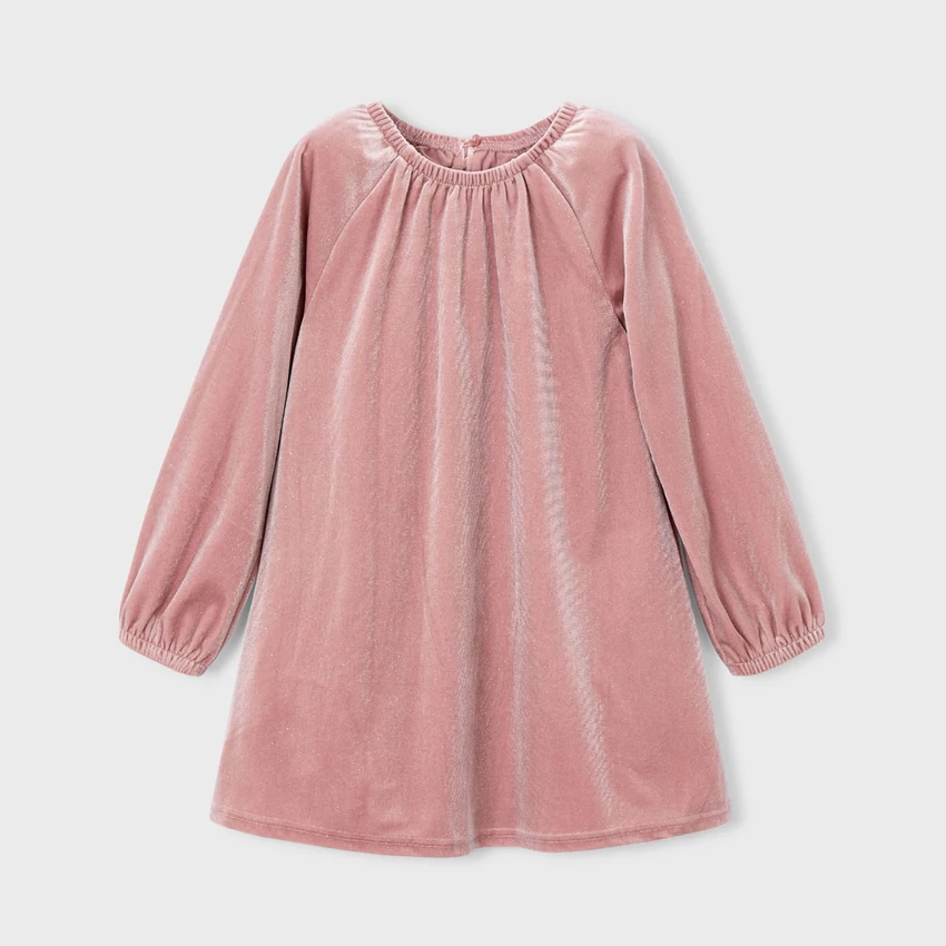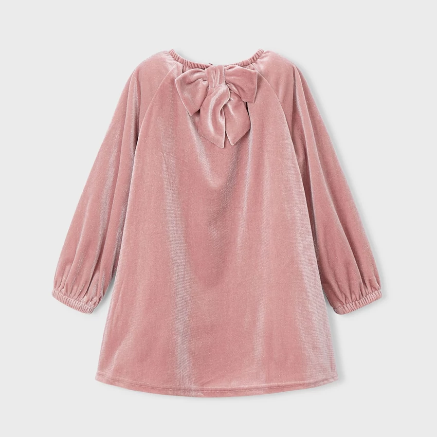| Mayoral hátán masnival díszített álomszép alkalmi plüssruha A-vonalú fazonnal, a ruhát végig apró csillogó strasszok díszítik, hihetetlenül puha és nagyon rugalmas plüssbársony anyagból készült, gumírozott nyakrésszel és ujjakkal, vékony béléssel a ruha alatt. Extrán kényelmes és nagyon csinos viselet ünnepekre, alkalmakra. 2025 TÉL | |