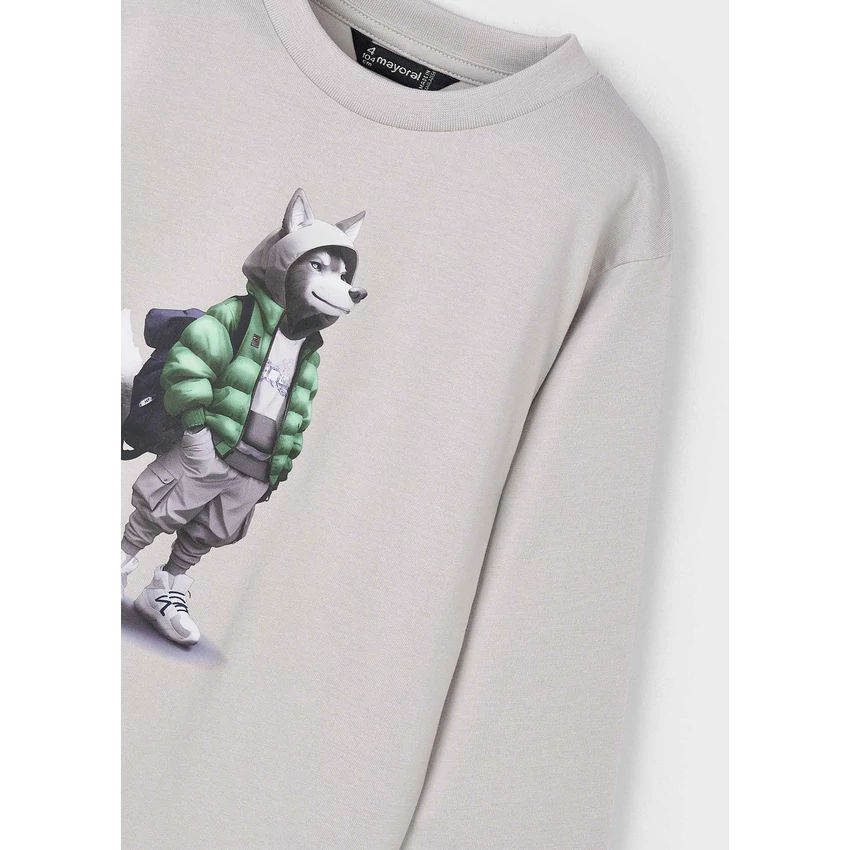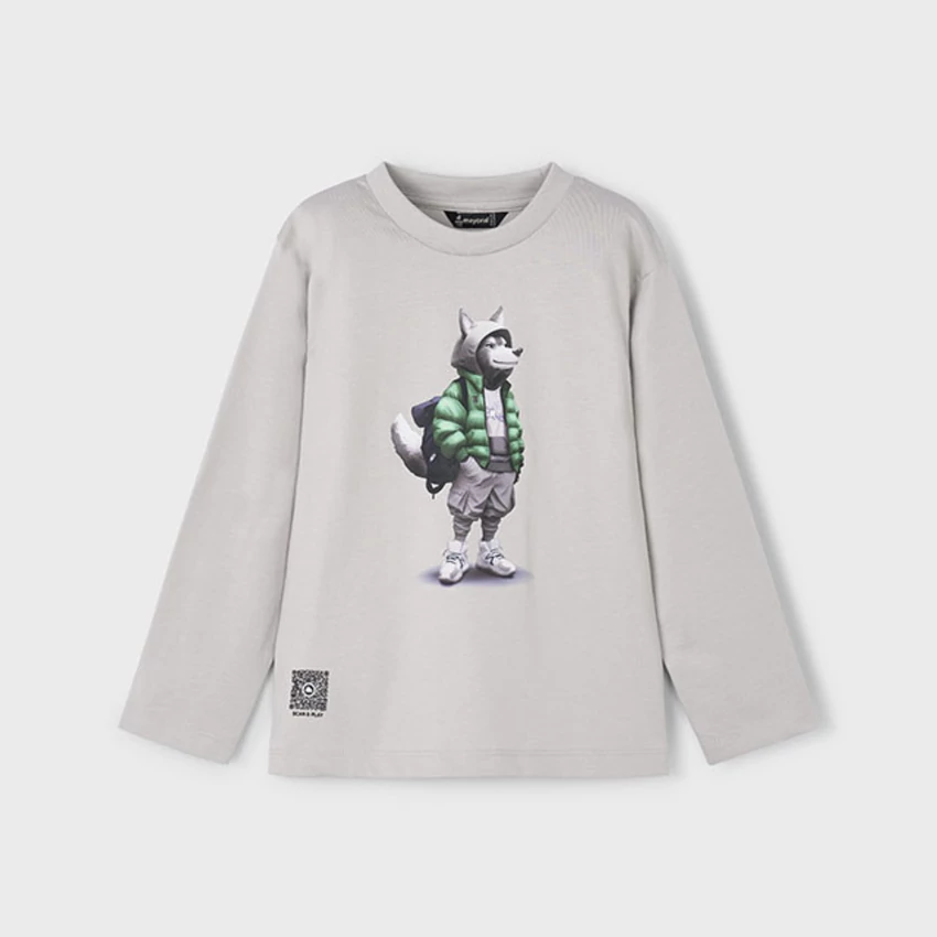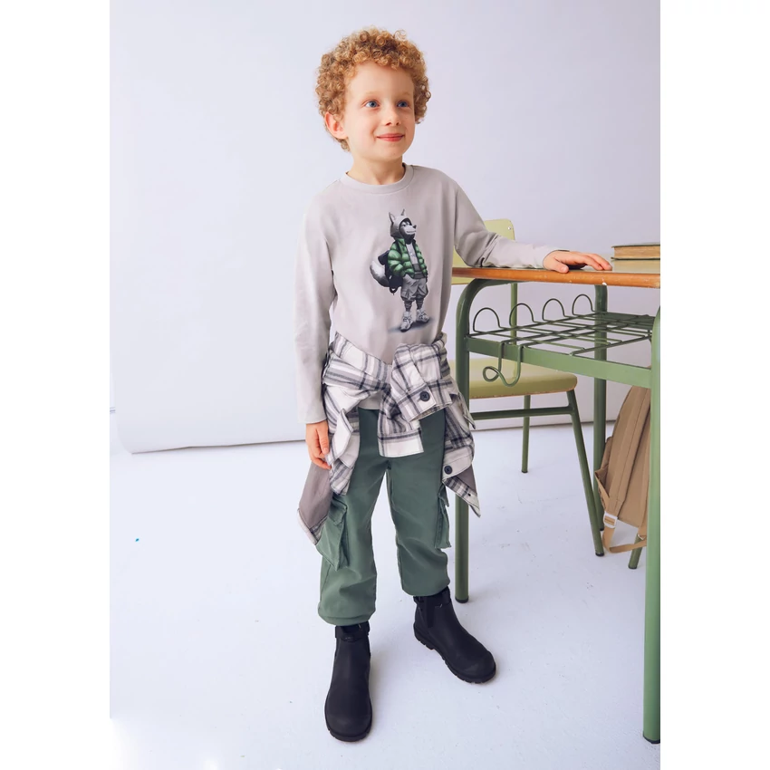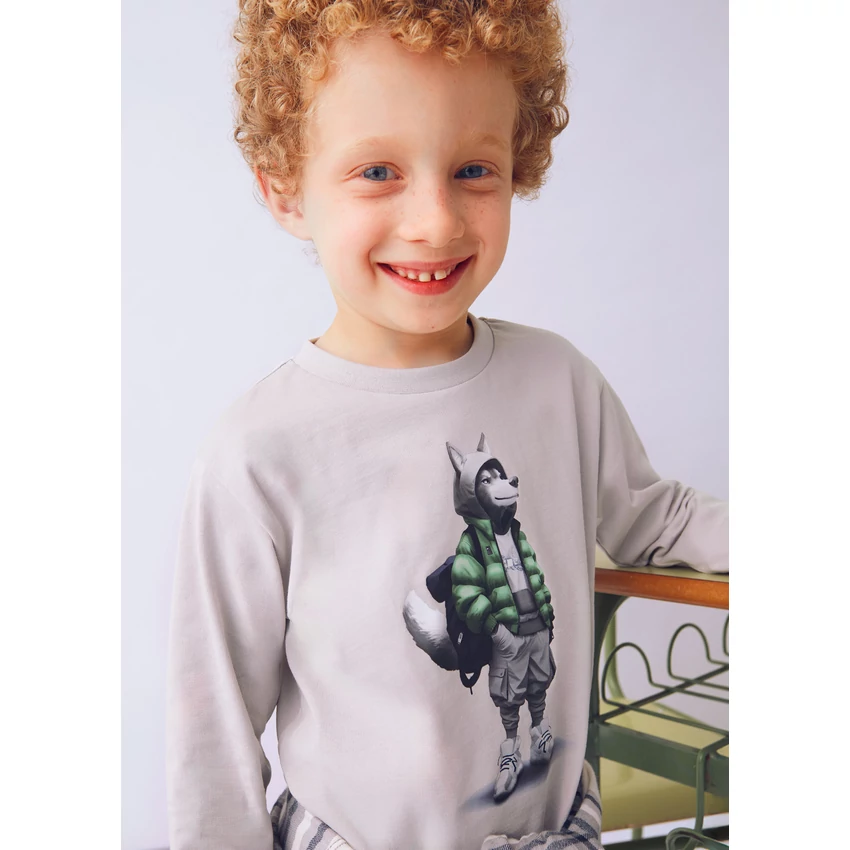 | Mayoral vagány farkasos nyomott mintás hosszú ujjú felső, puha pamutból készült, egyedi mintával, ami a fiúk nagy kedvence lesz, kényelmes viselet őszre-télre. | |