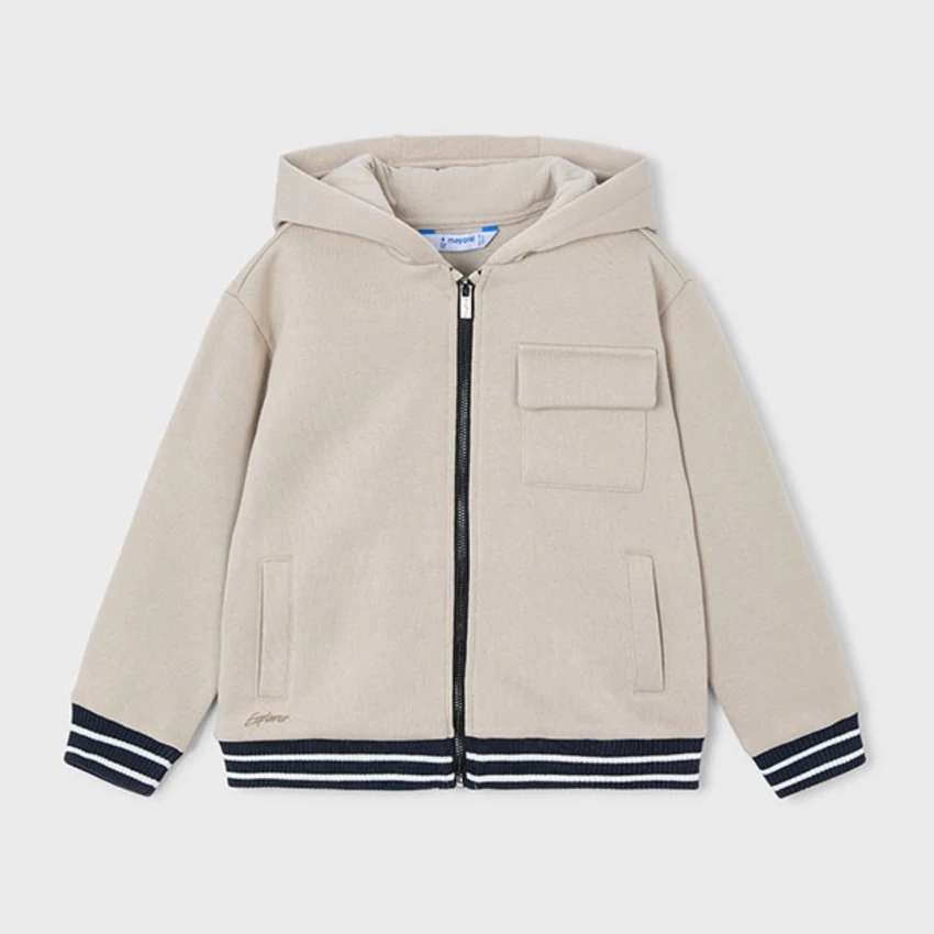 | Mayoral hátán Explorer felirattal díszített cipzáras pulóver csíkos passzéval az ujjain és derekán, kapucnival, zsebekkel és 1 mellzsebbel, enyhén rugalmas vastagabb pamutkeverék anyagból készült. Kényelmes és praktikus viselet őszre-télre. | |