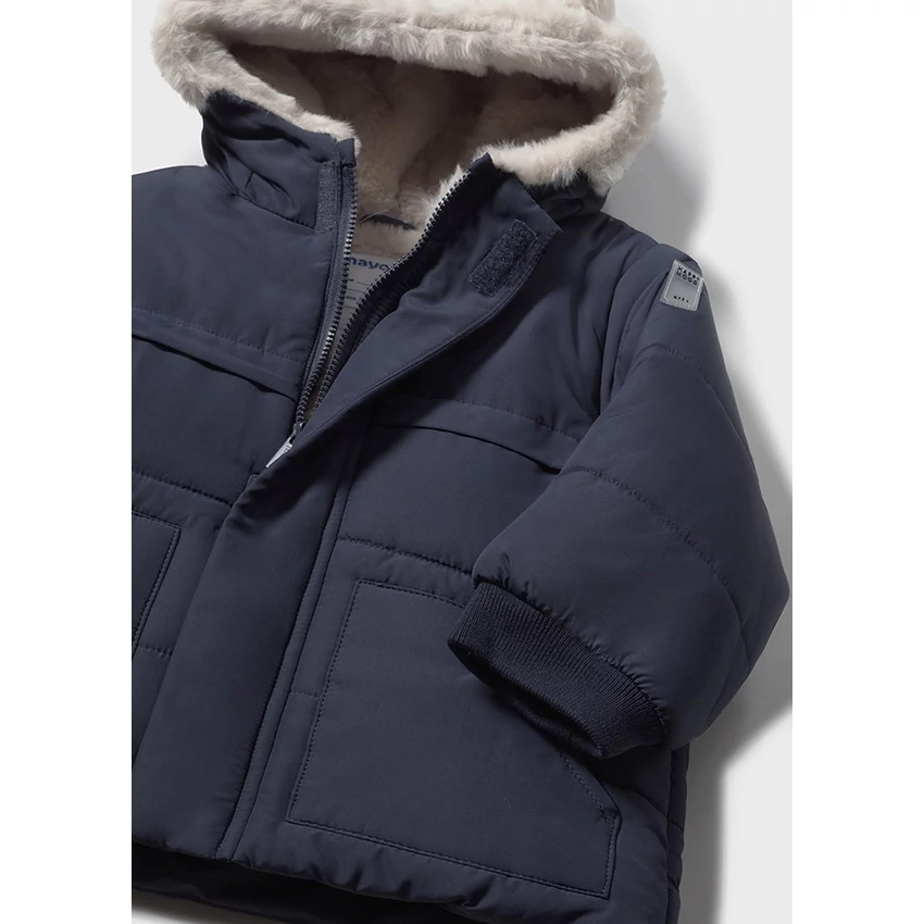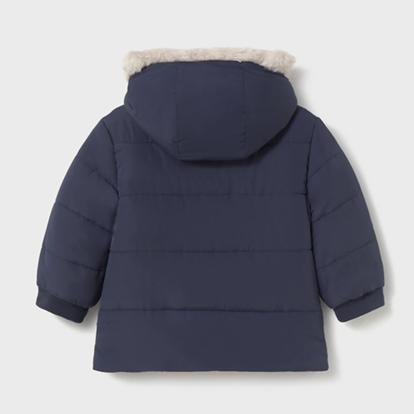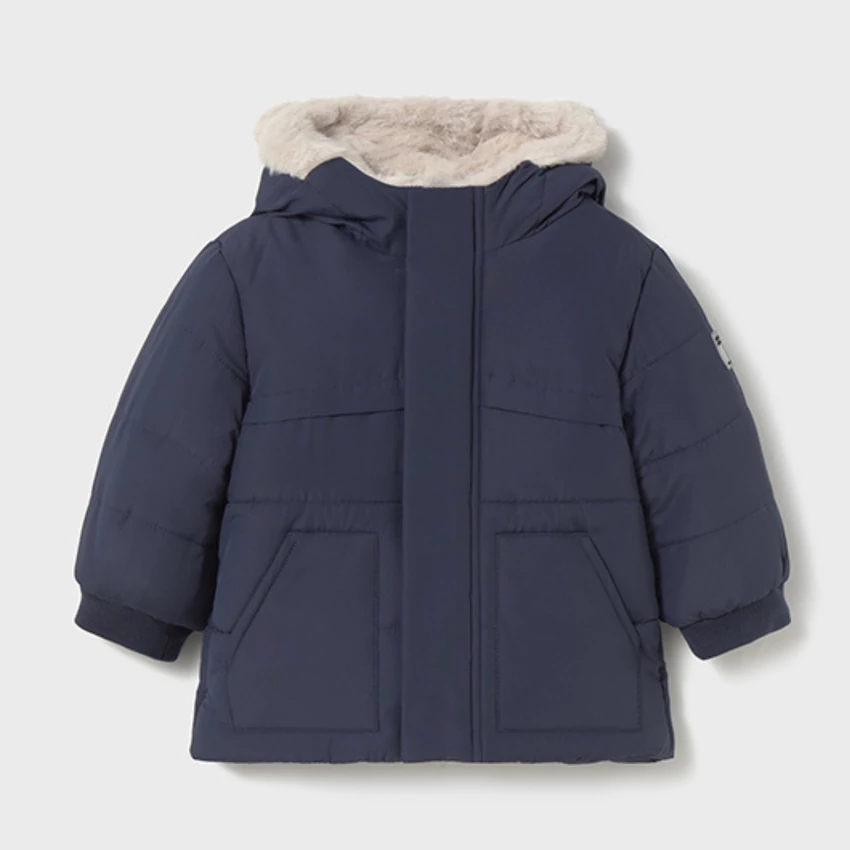 Mayoral hosszú fazonú szőrmés kapucni télikabát belül fehér szőrme béléssel, apró macifüles szőrmés kapucnival, rejtett cipzárral és patentokkal záródik, elöl zsebekkel, vastag töltetű igazi meleg télikabát. 2025 TÉL | |