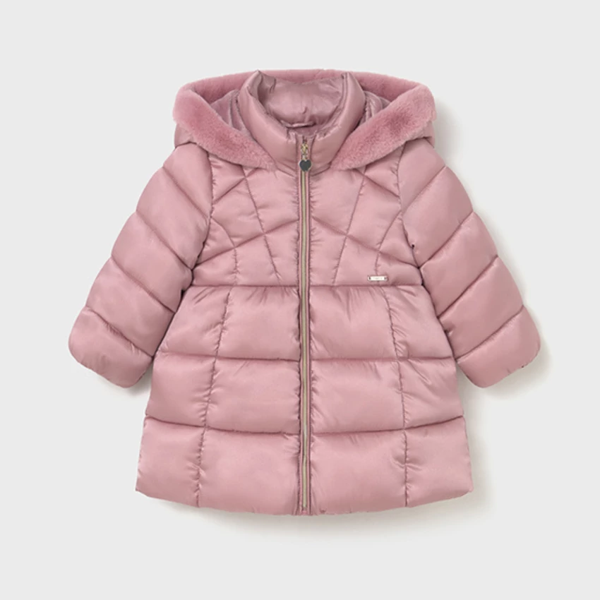 Mayoral gyönyörű hosszú fazonú karcsúsított steppelt télikabát szőrmedíszítéses kapucnival, derékban karcsúsított csinos fazonú, cipzárral záródik, gumírozott ujjakkal, belül puha orchidea színű szőrme béléssel, vastag töltettel. Csodaszép télikabát a legkisebbeknek. 2025 TÉL | |