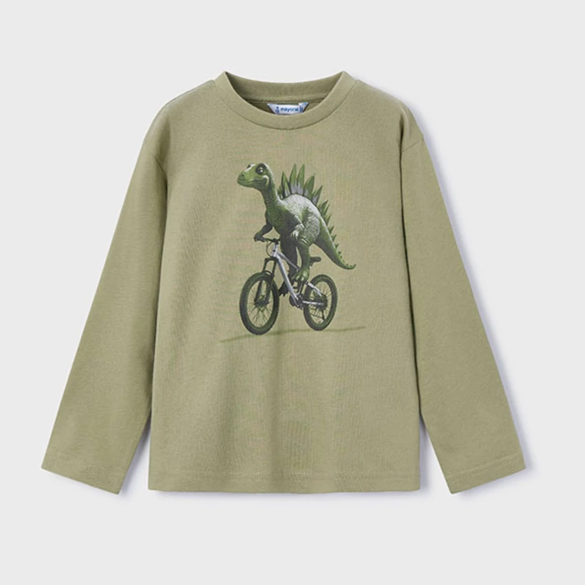 Mayoral vagány bicikliző dínómintás hosszú ujjú felső, puha pamutból készült, kényelmes és sportos viselet őszre-télre.