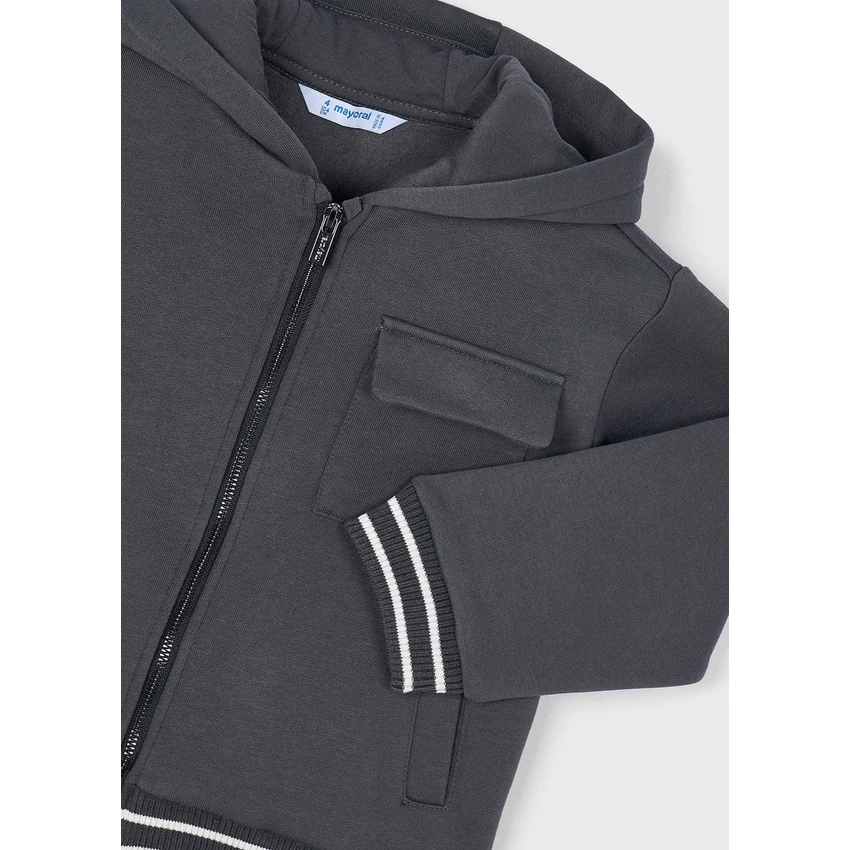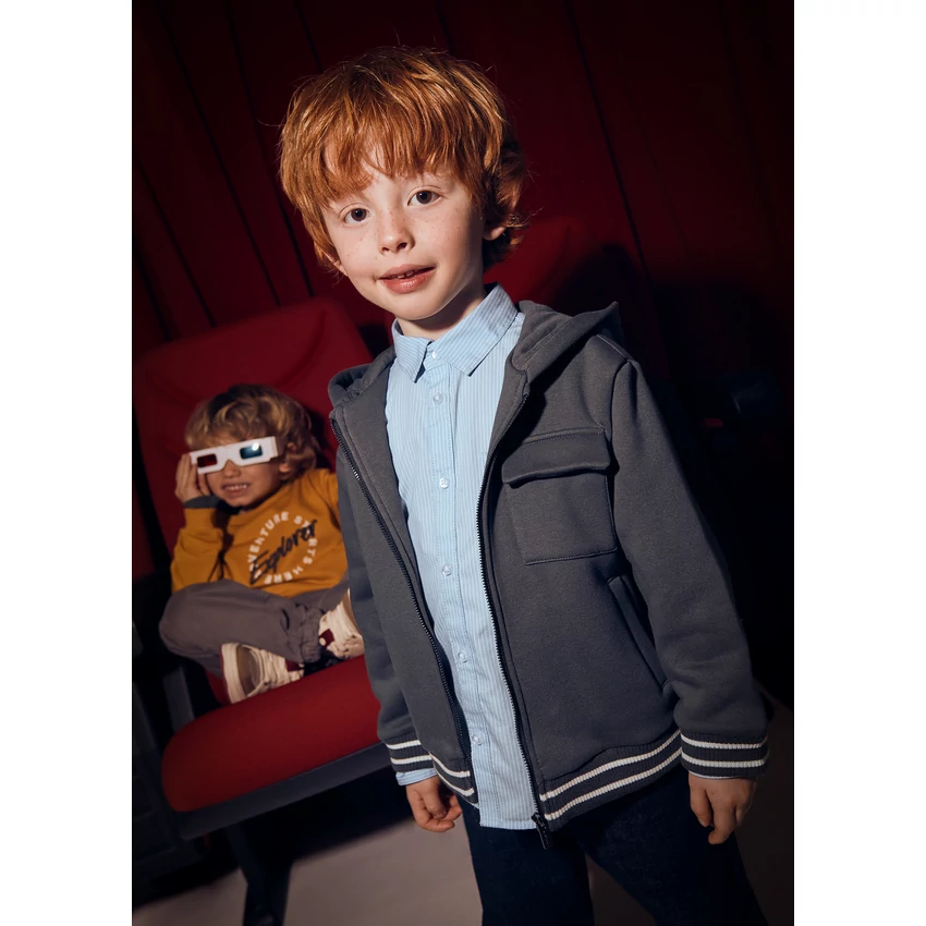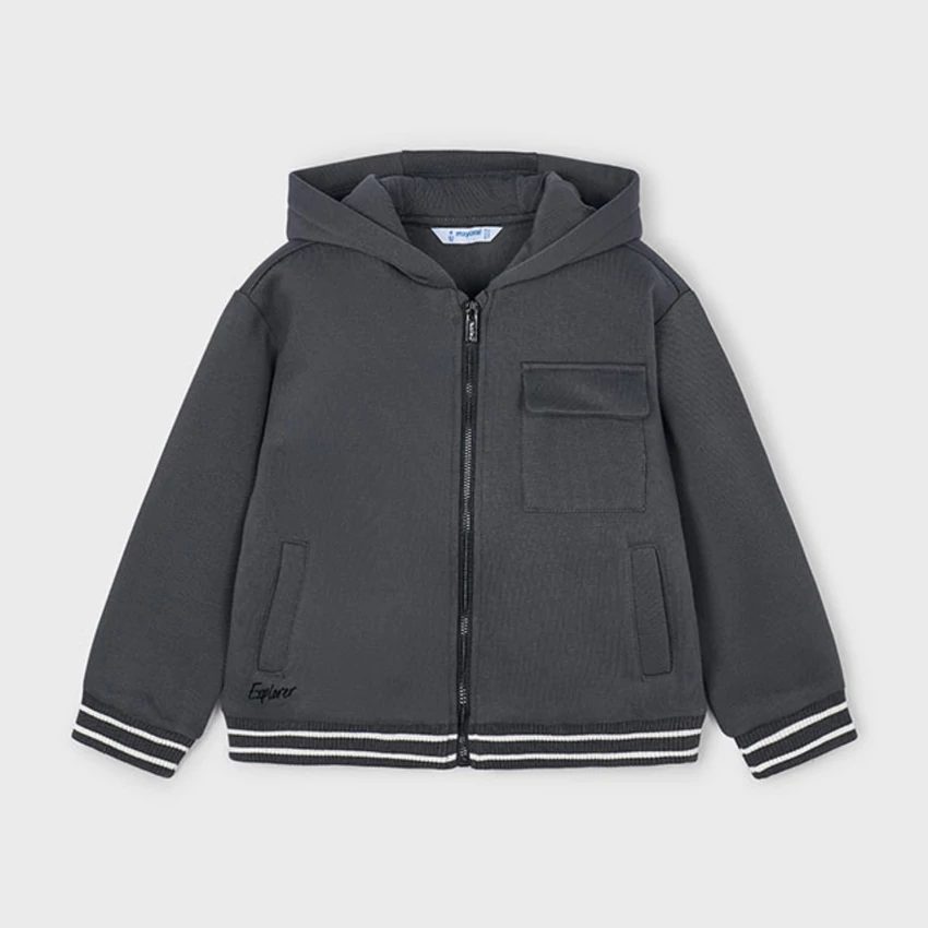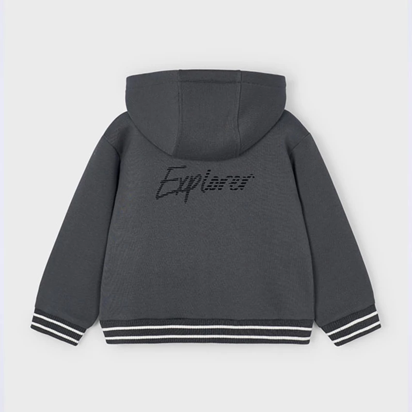 Mayoral hátán Explorer felirattal díszített cipzáras pulóver csíkos passzéval az ujjain és derekán, kapucnival, zsebekkel és 1 mellzsebbel, enyhén rugalmas vastagabb pamutkeverék anyagból készült. Kényelmes és praktikus viselet őszre-télre. | |