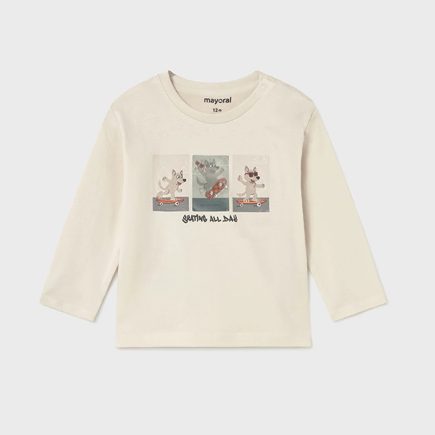 Mayoral mozgatásra váltakozó kiskutya mintás hosszú ujjú felső puha pamutból készült, vállán patentokkal nyitható. 2025 TÉL | |