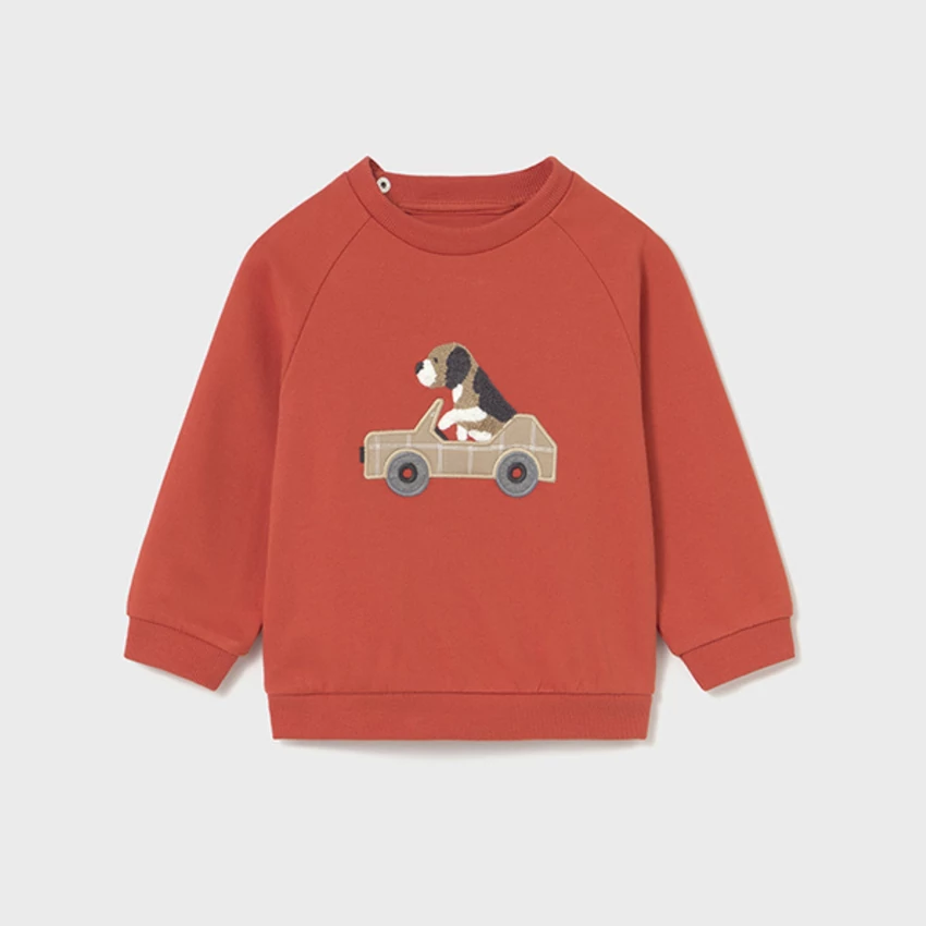 Mayoral 3 részes melegítő szett, ami egy kerek nyakú elöl szőrmés kiskutyus mintájú pamut melegítő felsőből áll, bolyhos béléssel, vállán patentokkal, illetve 2db gumis derekú megkötős vastagabb melegítő alsóból áll, gumírozott derékrésszel, megkötővel, belül bolyhos béléssel, a bézs színű a lábszáránál csíkos passzéval díszített. Praktikus őszi-téli viselet puha és rugalmas pamutból. | |