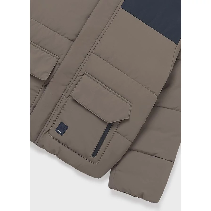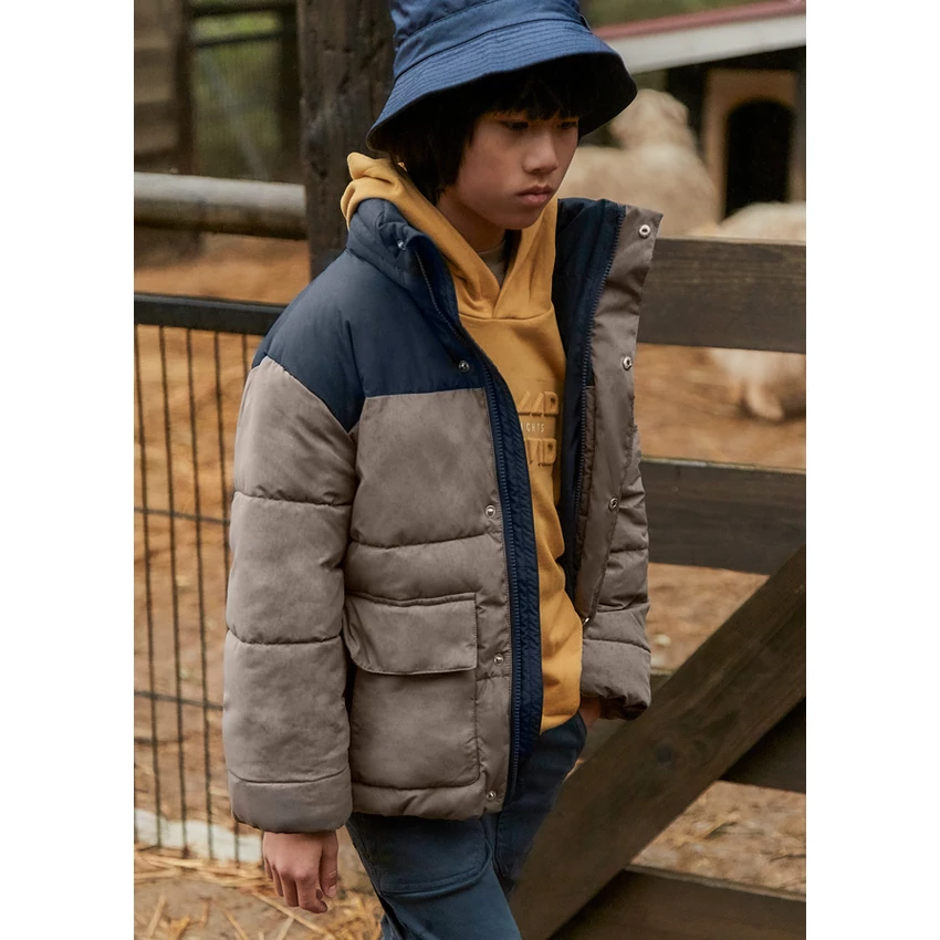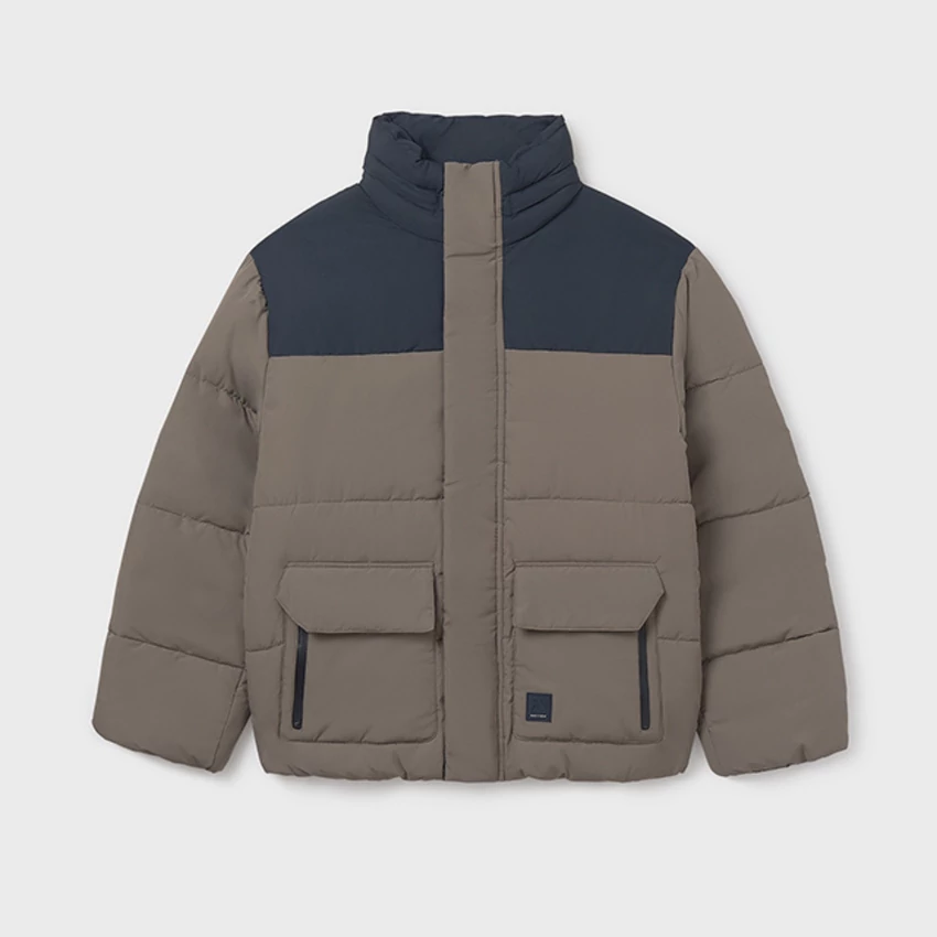 Mayoral vagány kapucni nélküli kétszínű steppelt télikabát ,gumírozott ujjakkal és derékrésszel elöl 2 nagy zsebbel, rejtett cipzárral és patentokkal zárható, vastag töltetű, belül polár béléssel, fenékközépig érő fazonnal. Ideális téli viselet. 2025 TÉL | |