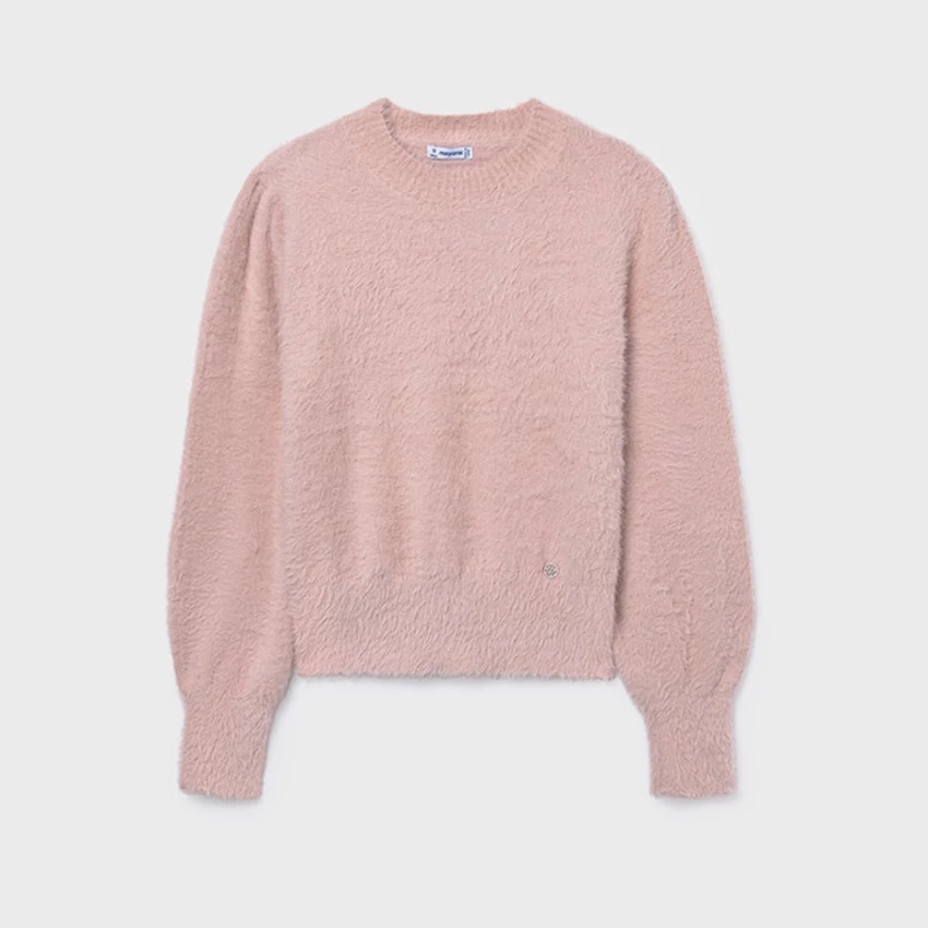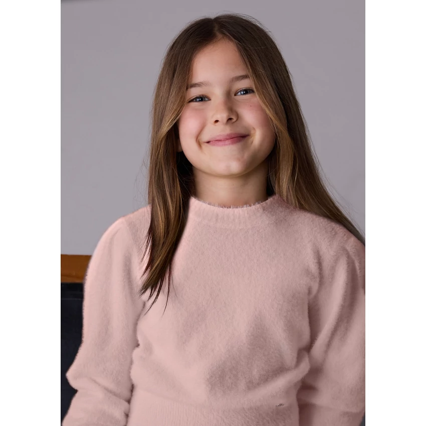 Mayoral álomszép hihetetlenül finom, pihe-puha szőrme pulóver kerek nyakkal, az ujjain és a pulóver alján passzéval, apró arany Mayoral logóval. Hihetetlenül szép termék élőben is. | |