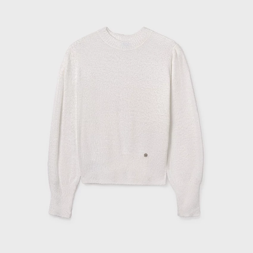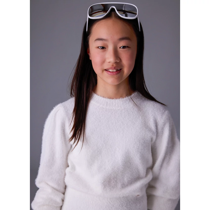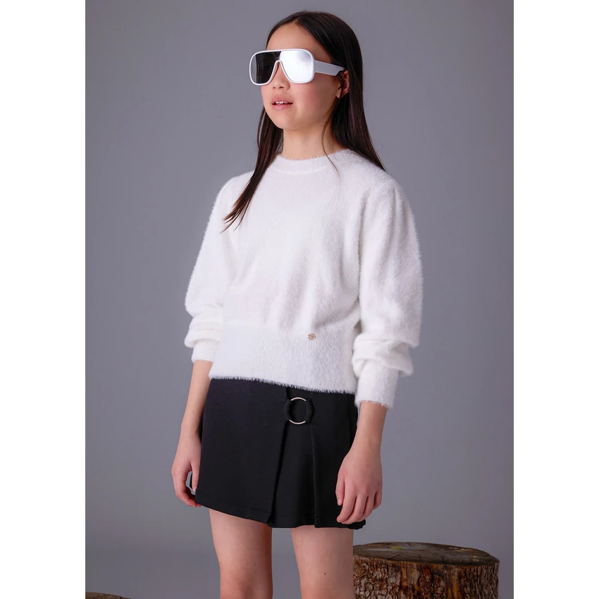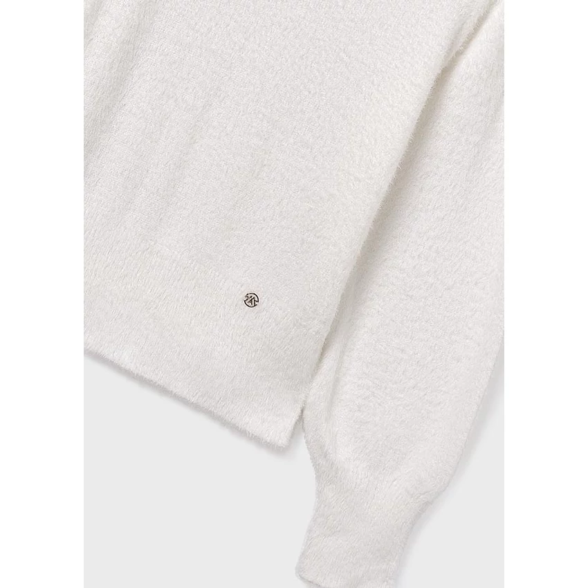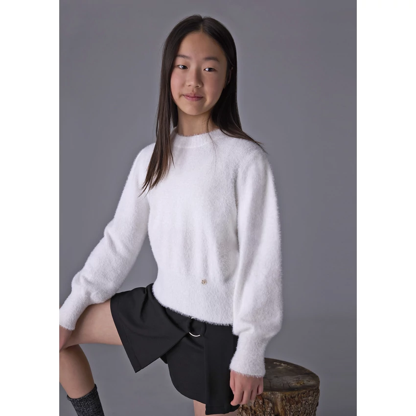 Mayoral álomszép hihetetlenül finom, pihe-puha szőrme pulóver kerek nyakkal, az ujjain és a pulóver alján passzéval, apró arany Mayoral logóval. Hihetetlenül szép termék élőben is. | |
