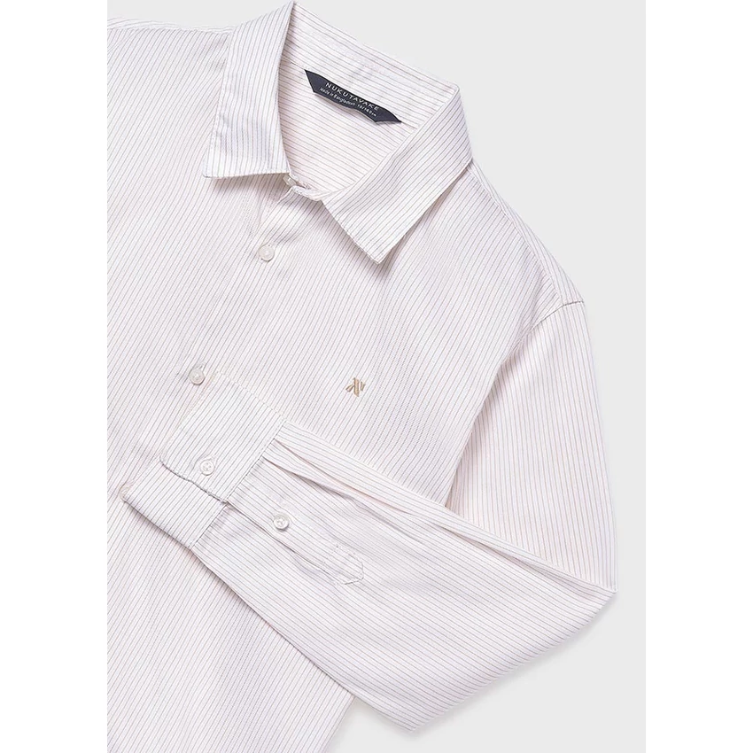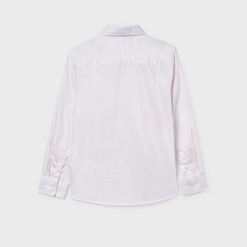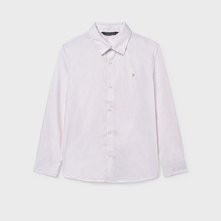 Mayoral elegáns hosszú ujjú fehér ing bézs csíkokkal, gallérral, apró mellzsebbel, 100% pamut anyagból készült elegáns viselet. | |