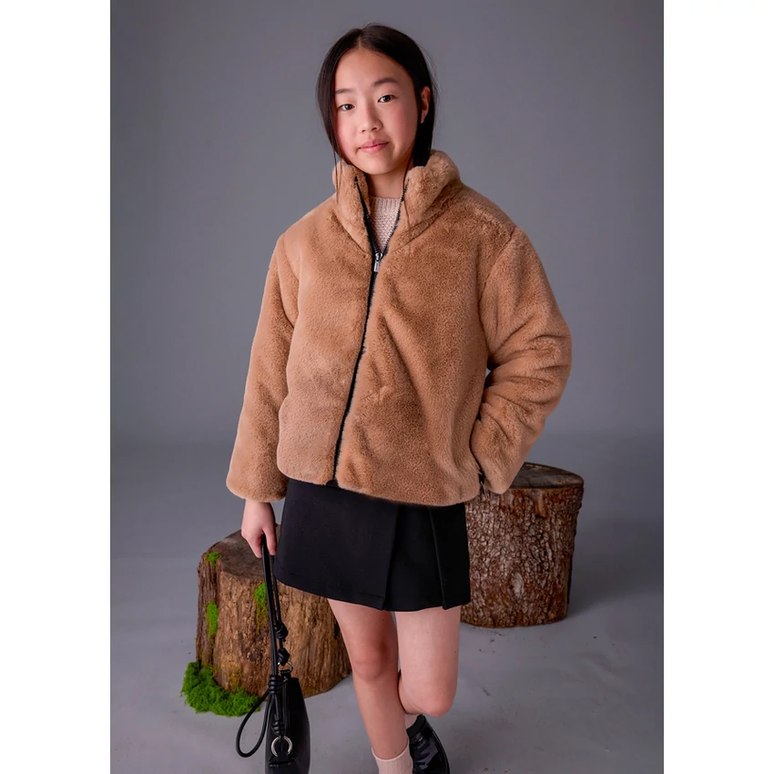 Mayoral álomszép pihe-puha meleg szőrmekabát derék alá érő fazonnal, cipzárral zárható, zsebekkel.. Hihetetlenül csinos és egyedi darab. | |