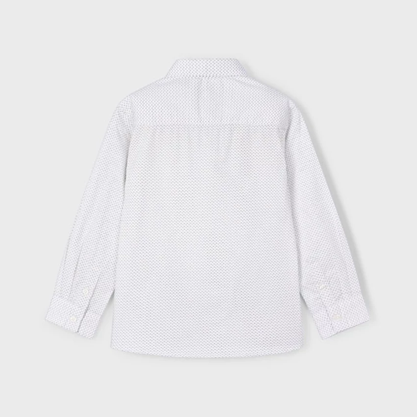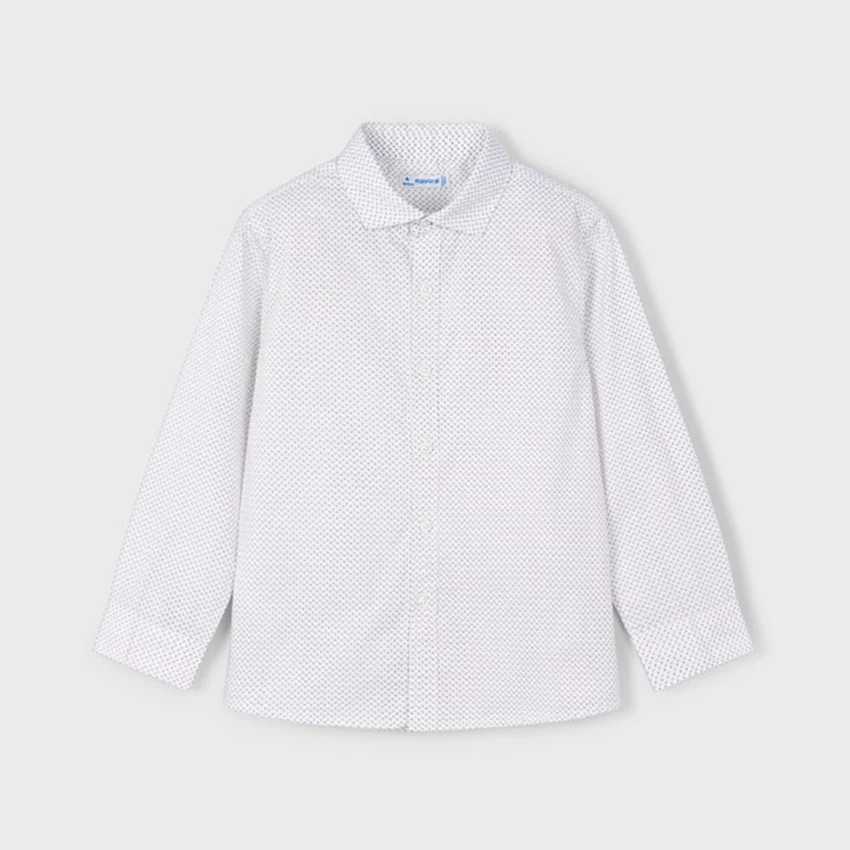 Mayoral pici bézs-fekete aprómintával díszített elegáns galléros hosszú ujjú fehér ing 100% pamut anyagból készült