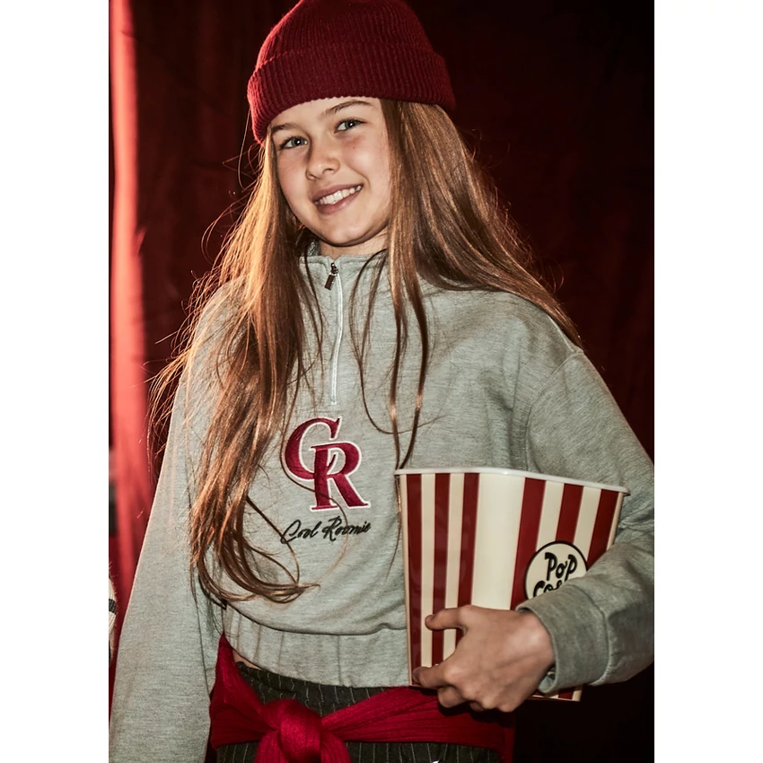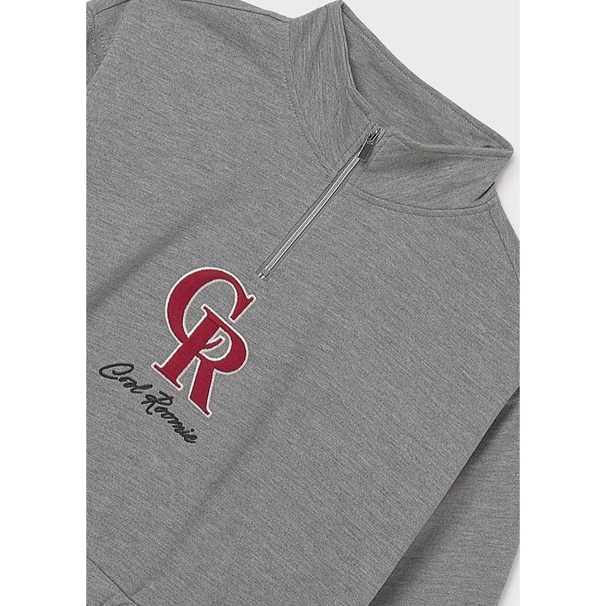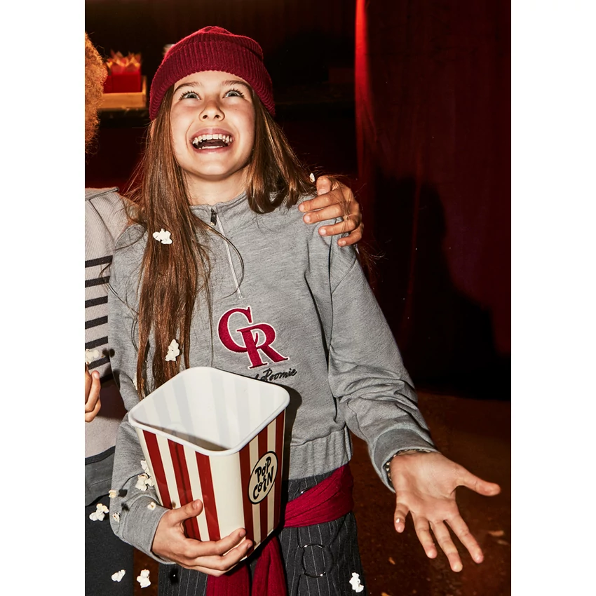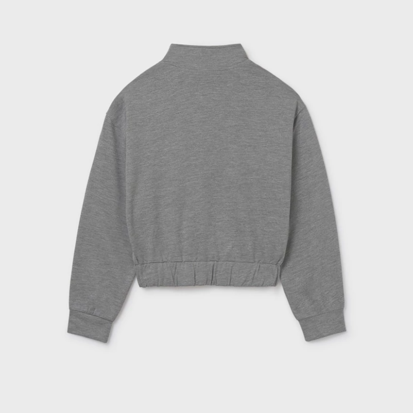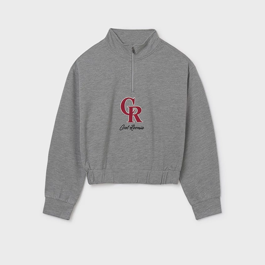 | Mayoral állónyakú elöl piros betűkkel és fekete hímzett felirattal díszített pamut pulóver elöl cipzár teszi különlegessé, gumírozott derékrésszel, rövidebb és bővebb fazonú, belül finom kis bolyhos béléssel rendelkezik, sportosan csinos viselet őszre. | |