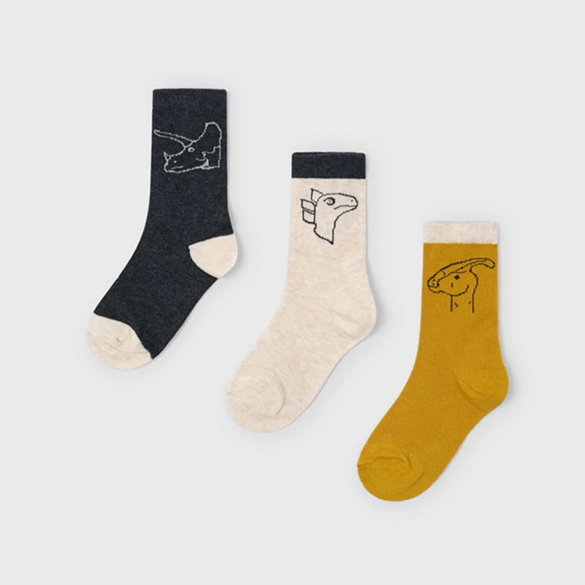 Mayoral 3 darabos dínós zokni szett rugalmas és puha pamutkeverék anyagból.