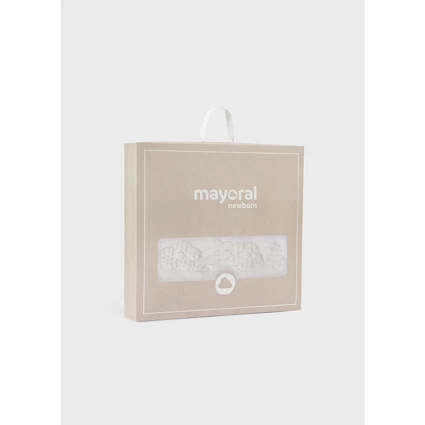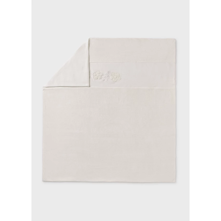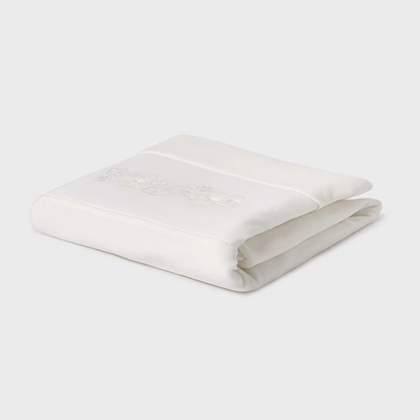 Mayoral csodaszép fehér vastag plüss takaró, egyik oldalán fehér puha plüss anyagon horgolt virágmintával, másik oldalán rugalmas pamut anyaggal. A takaró méretei: 89cm x 82cm. Csodaszép extra rugalmas termék. |