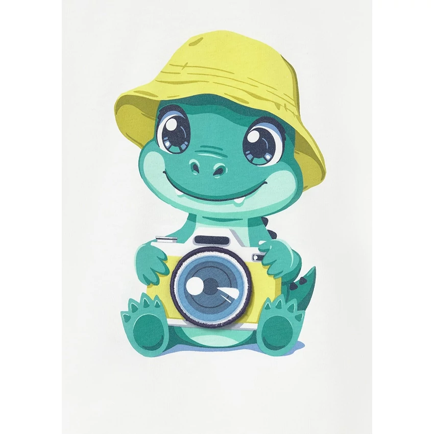 Mayoral elöl krokodilmintás rövid ujjú felső cuki kihajtható füllel, puha pamutból készült, vállán patentokkal nyitható. 2026 NYÁR