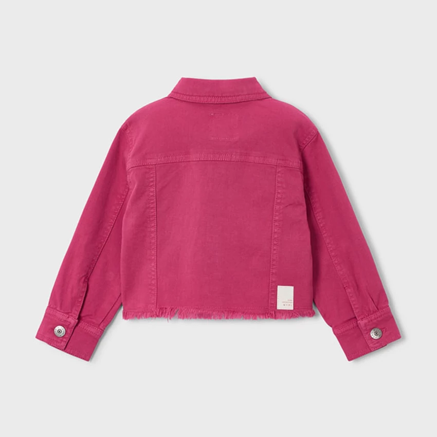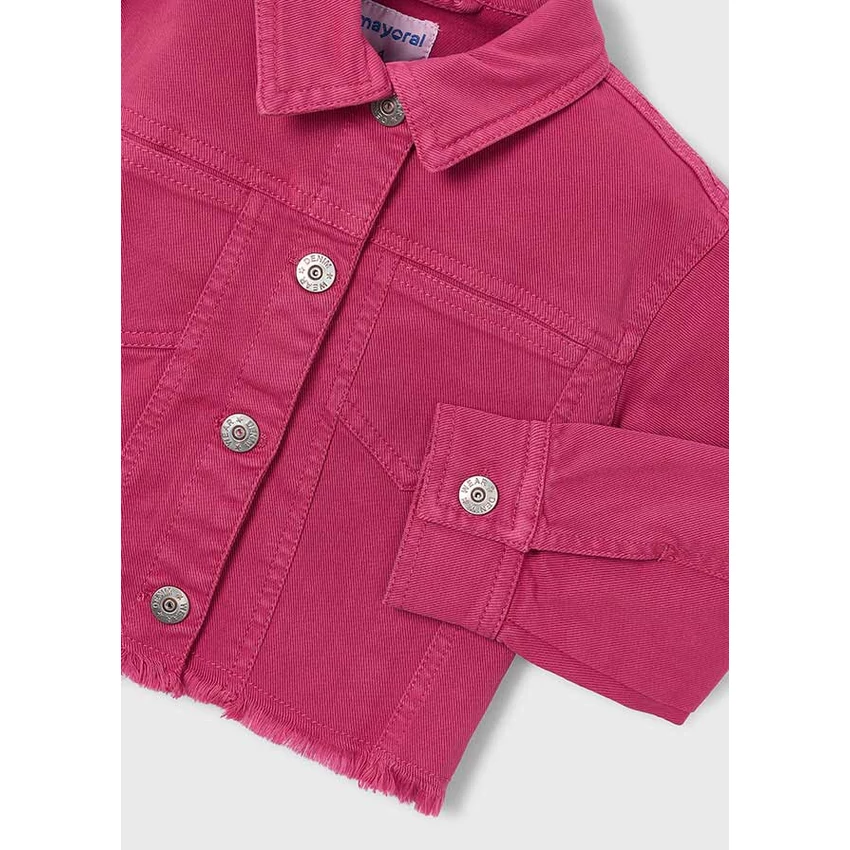 | Mayoral rövid divatos fazonú tavaszi farmerkabát galléros fazonnal, gombokkal záródik, alul rojtokkal díszített, rugalmas pamut anyagból készült termék, színben egyező nadrág külön kapható hozzá. 2026 NYÁR | |