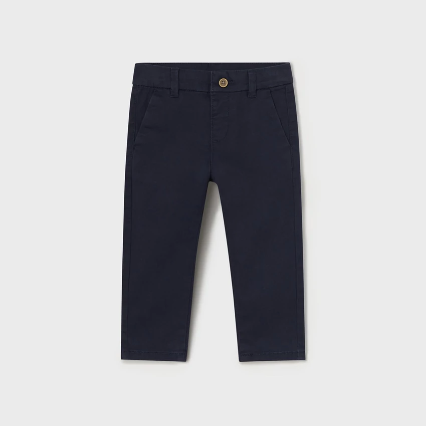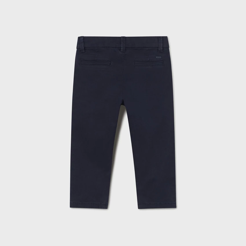 Mayoral alkalmi elegáns hosszúnadrág chino-slim fazonban, elöl-hátul zsebekkel, állítható derékrésszel, rugalmas pamut anyagból, sötétkék színű. |