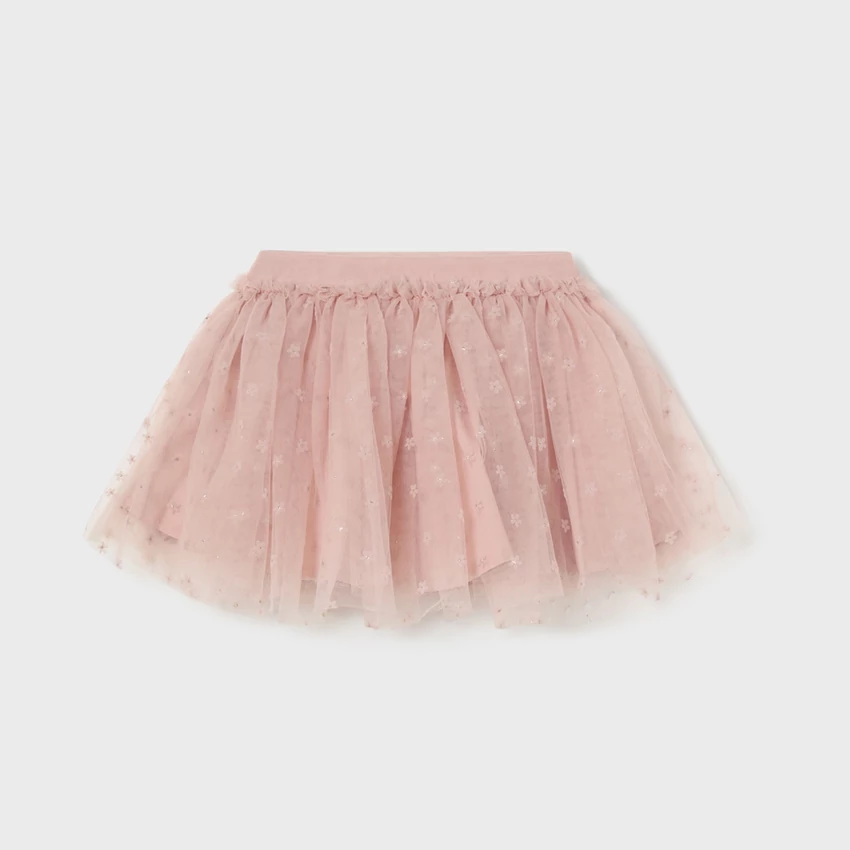 Mayoral apró virágmintás tüllszoknya csiilogó részletekkel, gumírozott derékrésszel, pamut alsószoknyával.