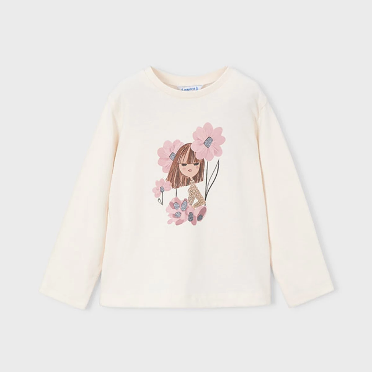 Mayoral 3 részes pamut szett, ami egy hosszú ujjú nagyon szép virágmintás-kislányos hosszú ujjú felsőből áll, puha pamutból készült kerek nyakkal, illetve 2db őszi hosszú pamut leggings-ből áll, amik nagyon rugalmas anyagúak, gumírozott derekúak, púderrózsaszín és világosszürke színűek.