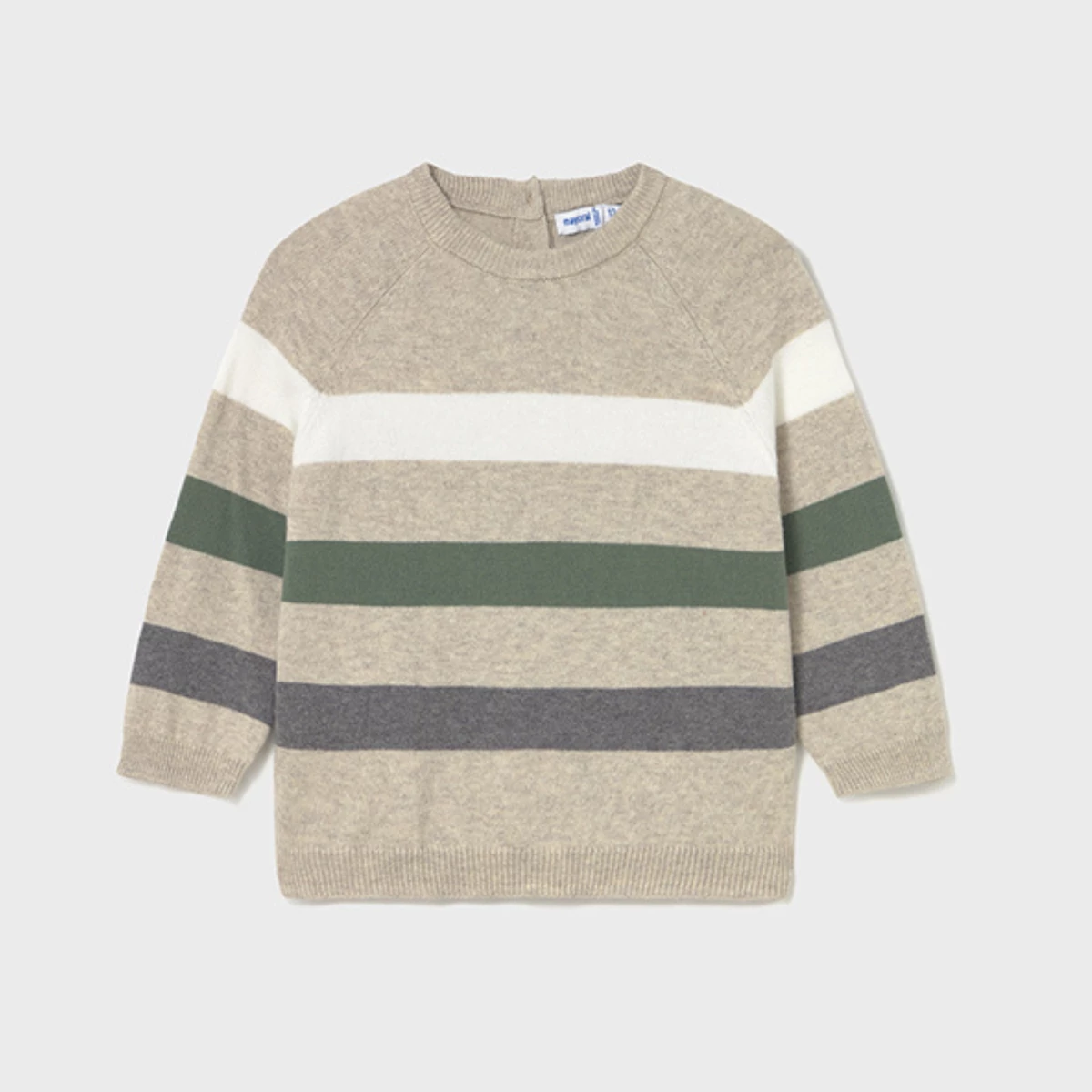 Mayoral csíkos finomkötött pulóver puha és finom rugalmas kötött anyagú, hátán patenttal záródik. Csinos és elegáns viselet a legkisebbeknek. 2025 TÉL