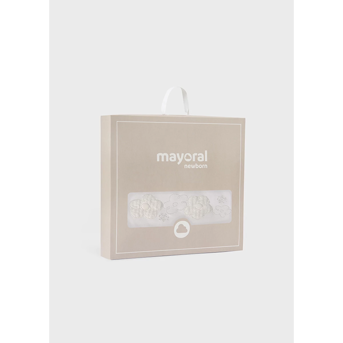 Mayoral csodaszép fehér vastag plüss takaró, egyik oldalán fehér puha plüss anyagon horgolt virágmintával, másik oldalán rugalmas pamut anyaggal. A takaró méretei: 89cm x 82cm. Csodaszép extra rugalmas termék. |