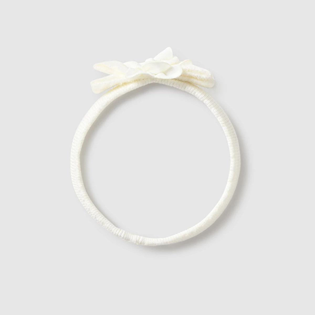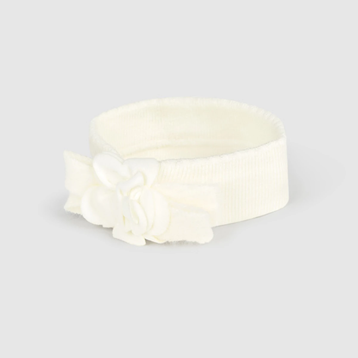 Mayoral csodaszép elasztikus és puha anyagú kötött fejpánt, a fejpántot egy szőrme anyagú masni díszíti közepén virággal, díszdobozban szállítjuk.