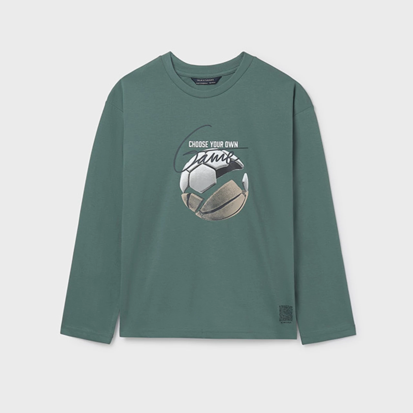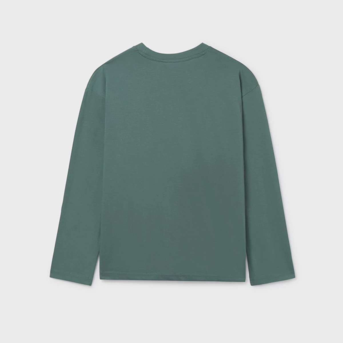 Mayoral elöl nyomott fotómintával és felirattal díszített hosszú ujjú felső puha pamutból készült. | |