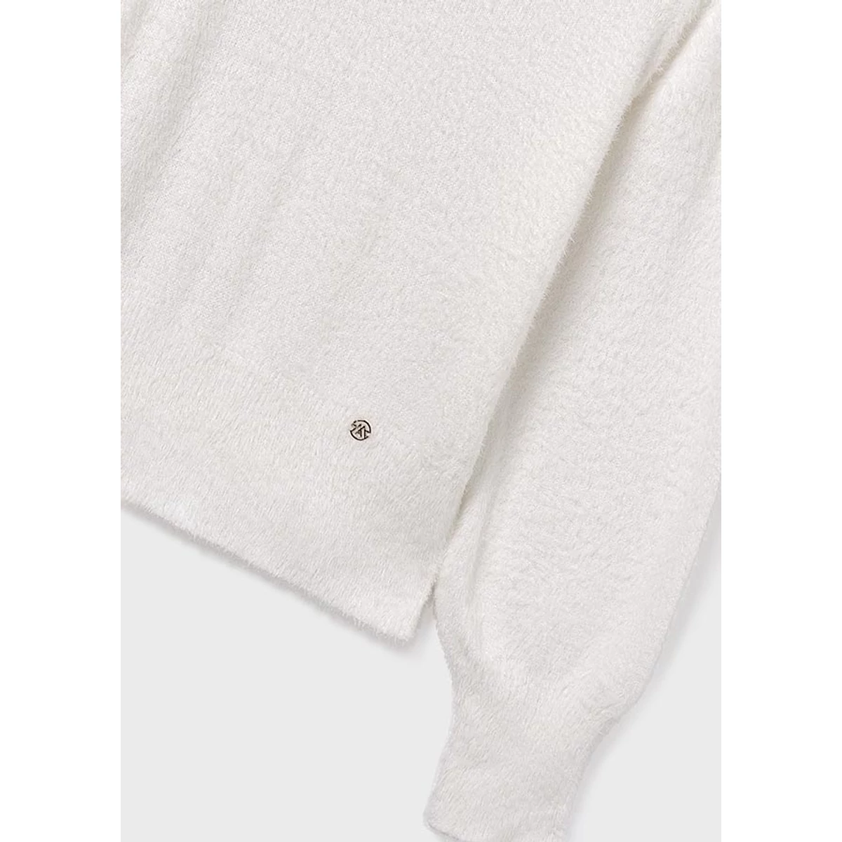 Mayoral álomszép hihetetlenül finom, pihe-puha szőrme pulóver kerek nyakkal, az ujjain és a pulóver alján passzéval, apró arany Mayoral logóval. Hihetetlenül szép termék élőben is.