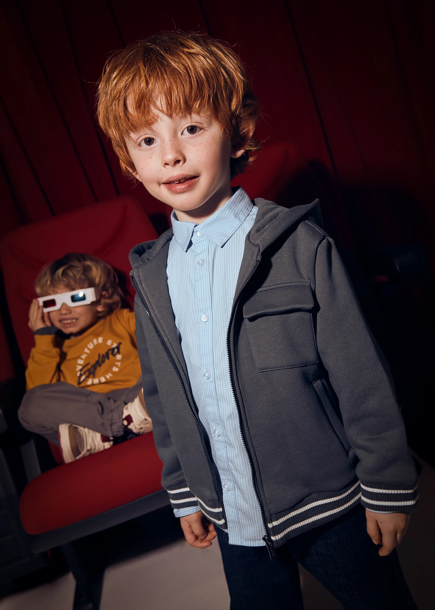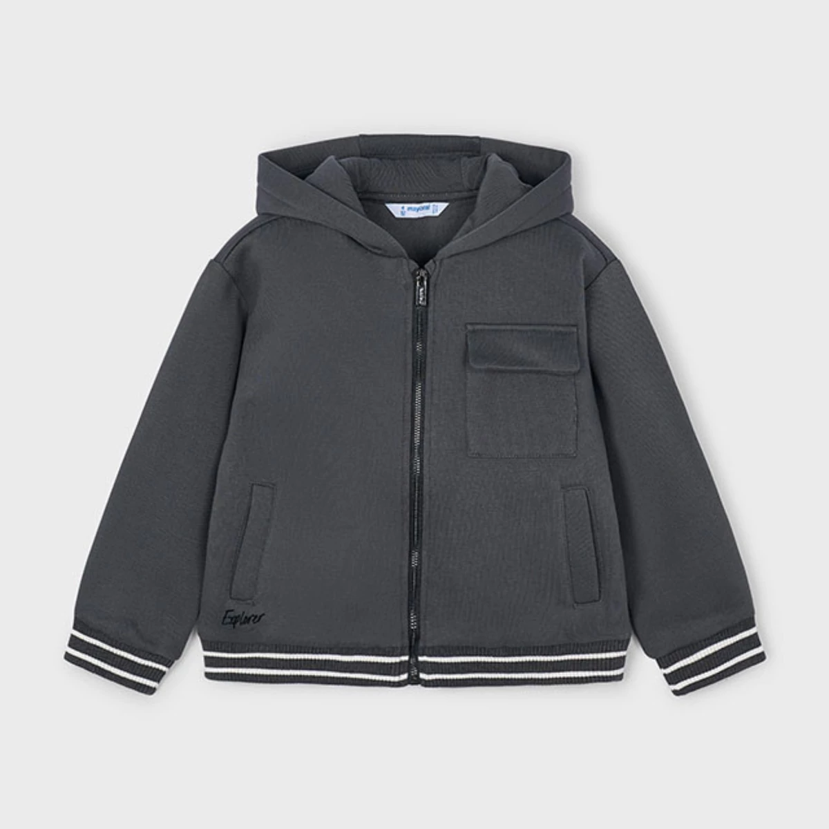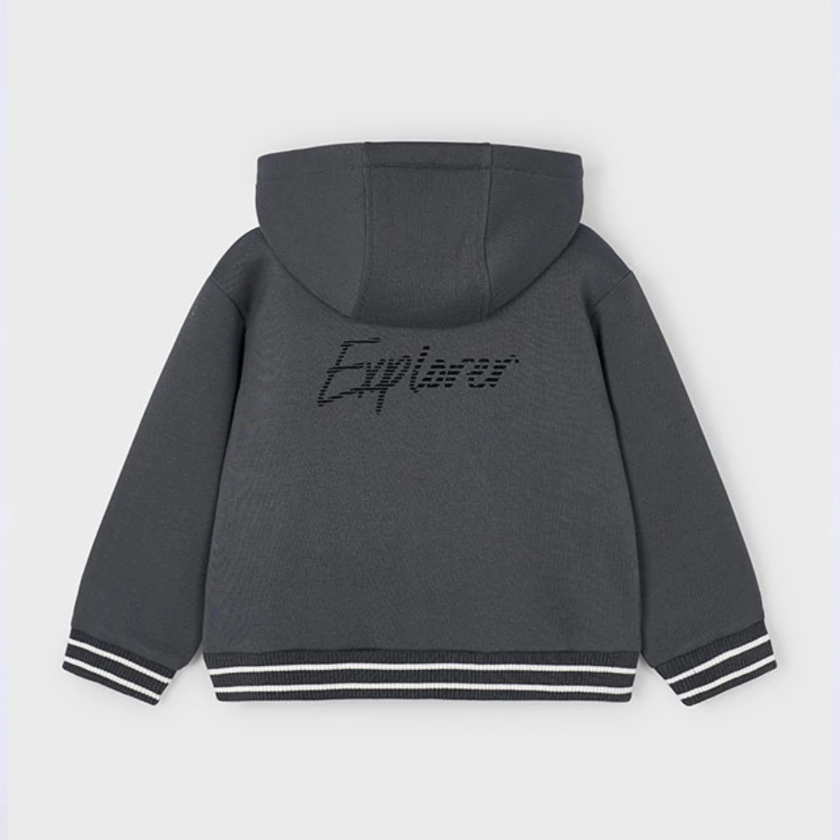 Mayoral hátán Explorer felirattal díszített cipzáras pulóver csíkos passzéval az ujjain és derekán, kapucnival, zsebekkel és 1 mellzsebbel, enyhén rugalmas vastagabb pamutkeverék anyagból készült. Kényelmes és praktikus viselet őszre-télre.