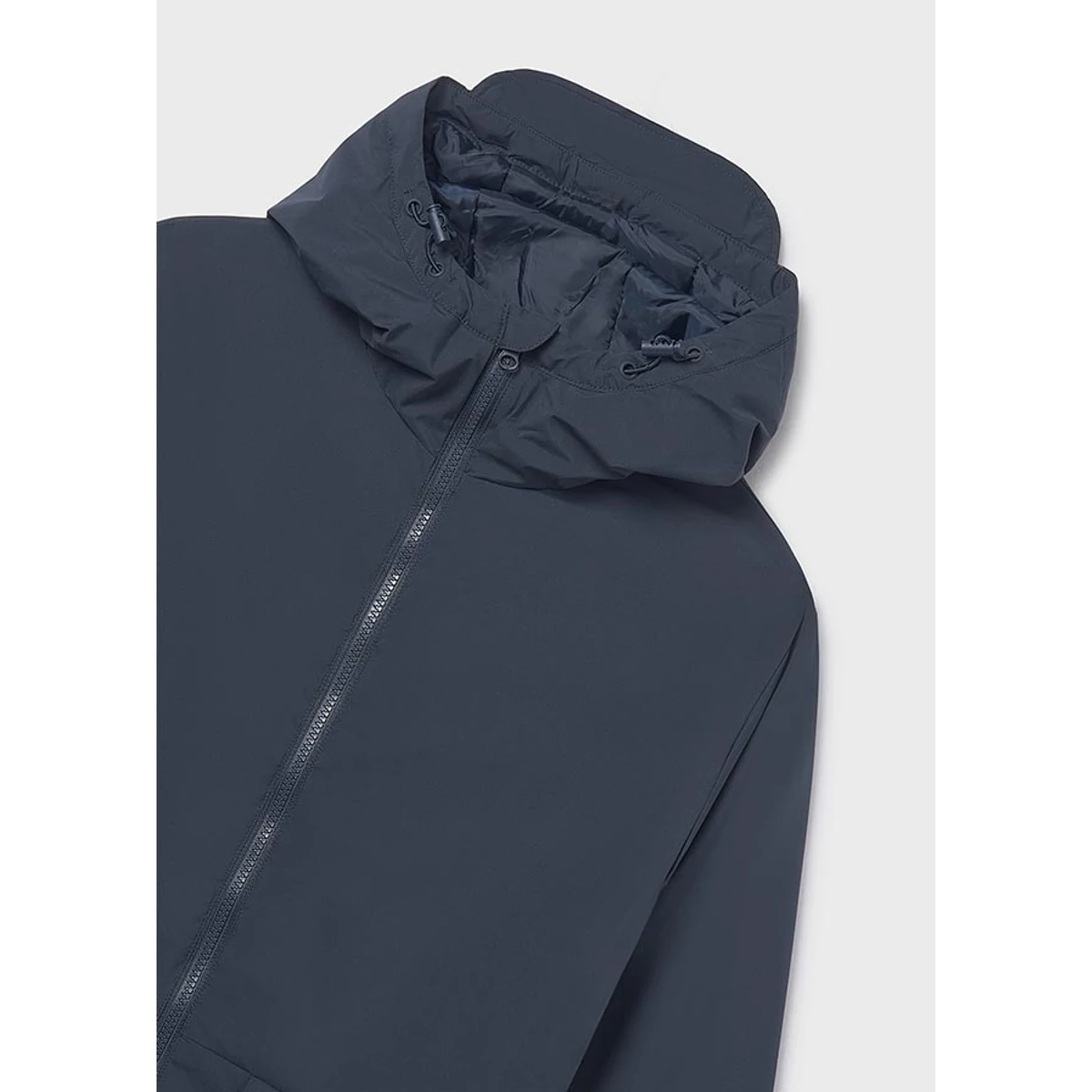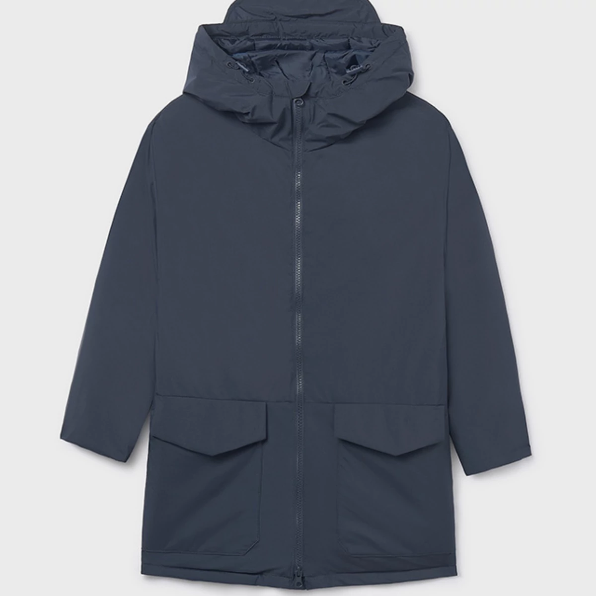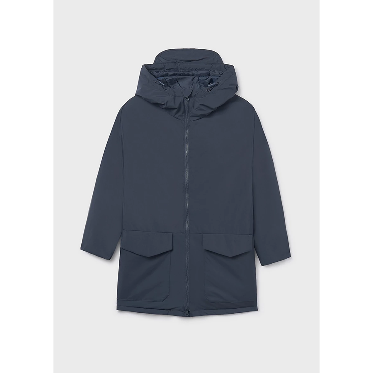 Mayoral hosszú fazonú átmeneti parka kabát közepesen vastag nagyon puha és könnyed anyagú egyenes szabású enyhén oversize bővebb fazonú, cipzárral záródik, összehúzható kapucnival, nagyméretű zsebekkel. Tökéletes átmeneti kabát vagány trendi fazonnal. 2025 TÉL