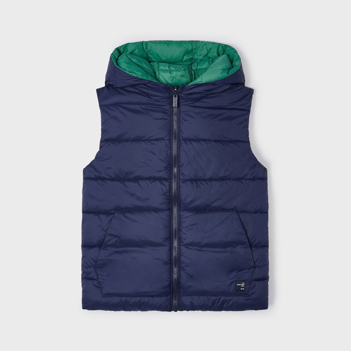 Mayoral kifordítható steppelt őszi mellény csodaszép színkombinációban, vastag töltettel, mindkét oldalán zsebekkel. Kényelmes, csinos és nagyon praktikus viselet.
