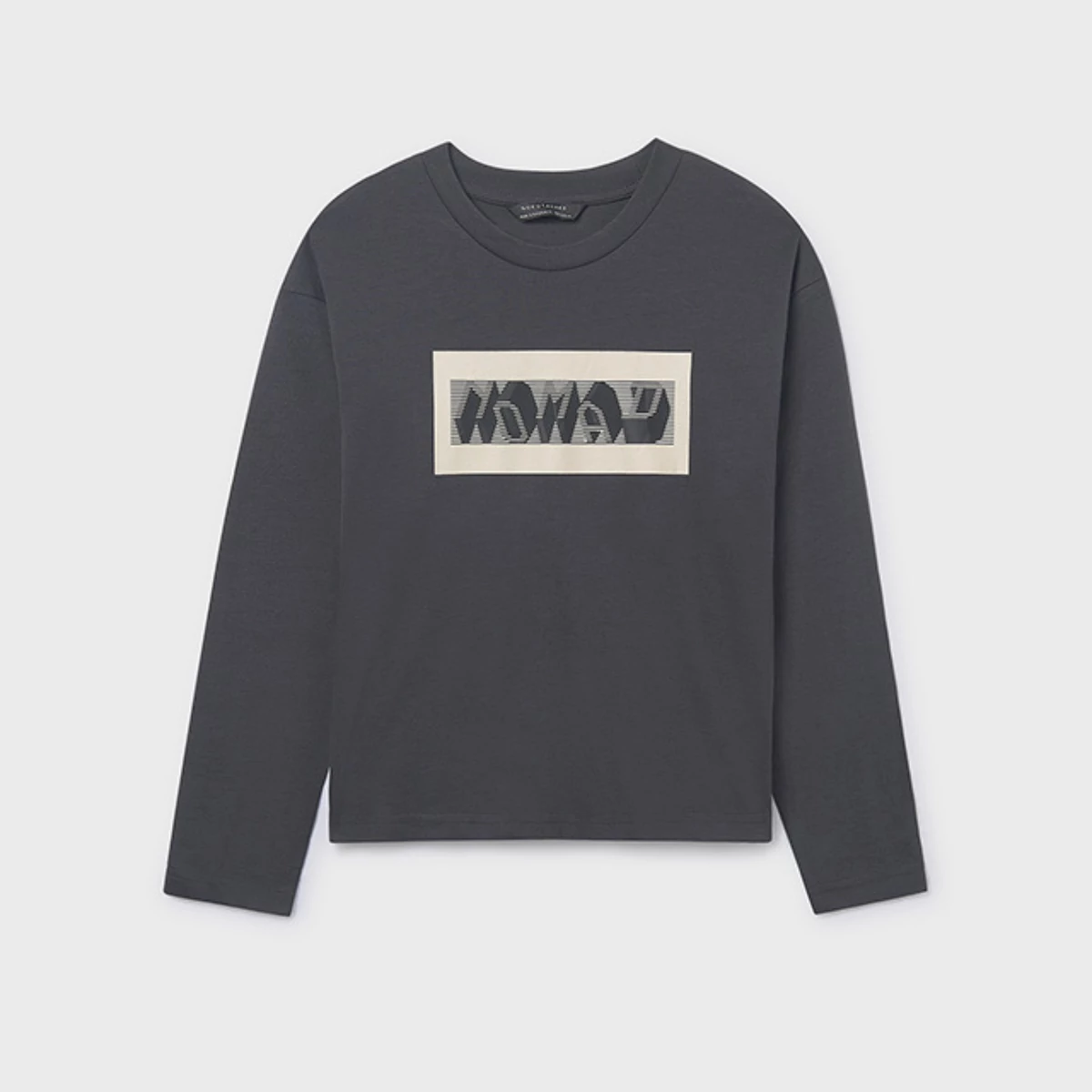 Mayoral egyedi Nomád felirattal díszített hosszú ujjú felső, puha pamutból készült. 2025 TÉL