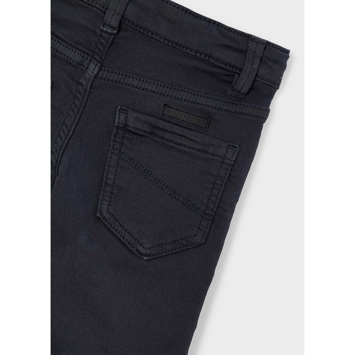 | Mayoral soft ( puha anyagú) vastagabb anyagú egyenes szárú farmernadrág állítható derékrésszel, enyhén rugalmas anyagból, patenttal zárható, elöl-hátul zsebekkel Szuper kényelmes és csinos őszi-téli nadrág. Nagyon sötétszürke-fekete színű. | |