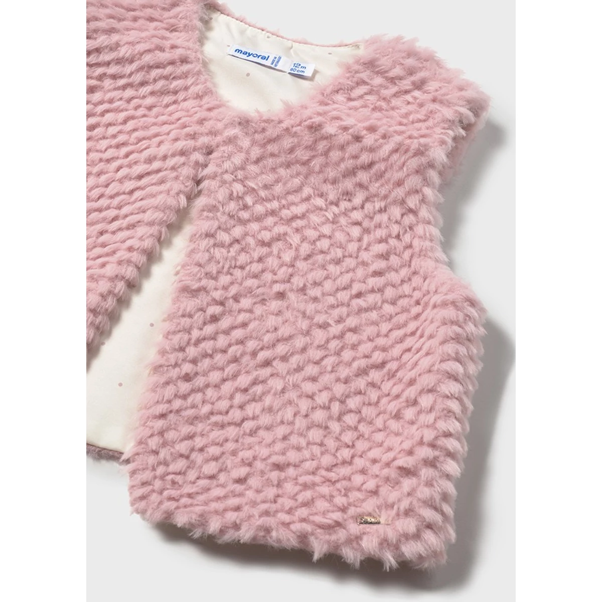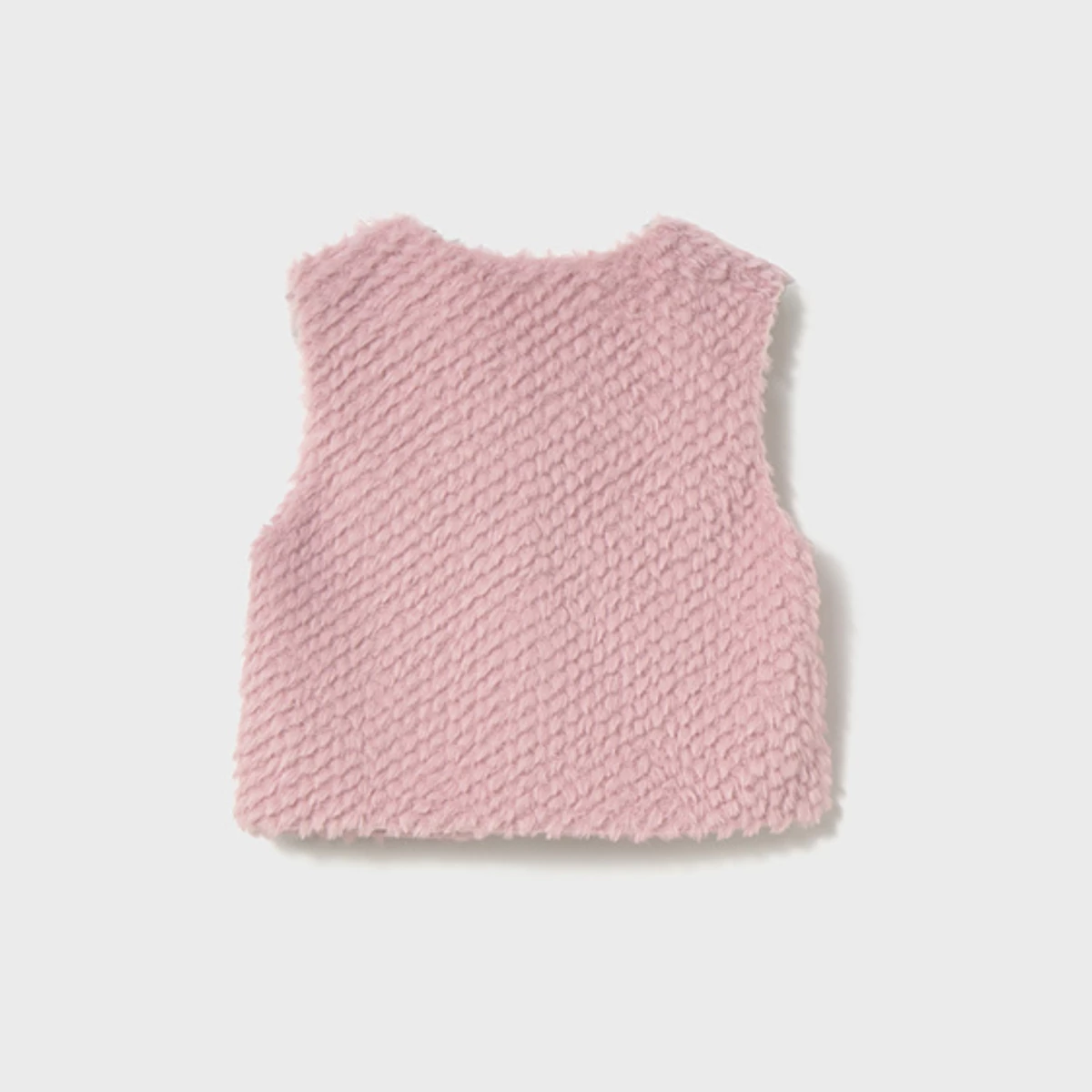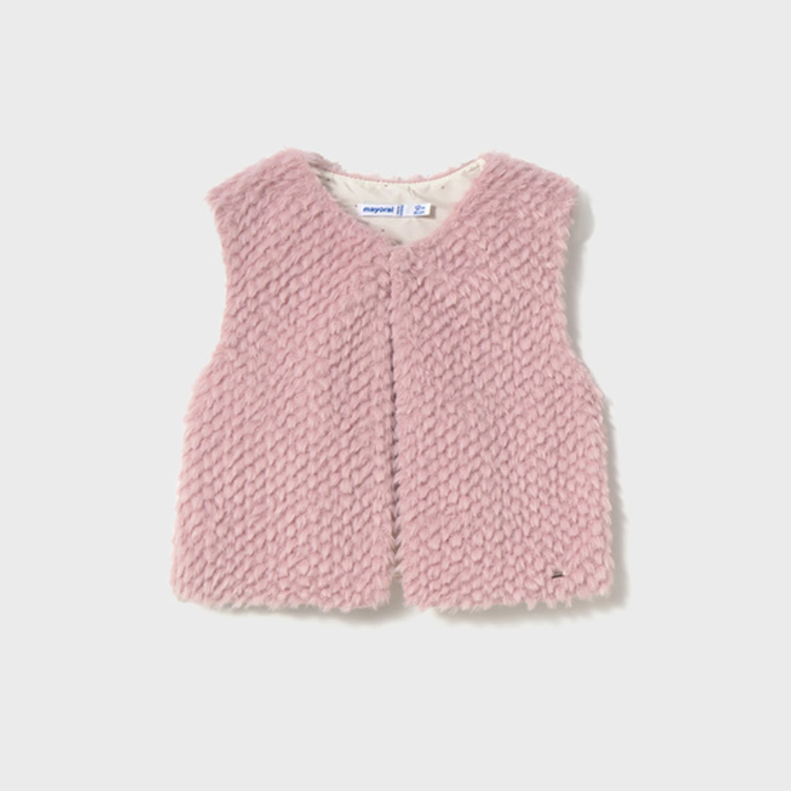 Mayoral puha rózsaszín szőrme mellény belül vékony béléssel, vékonyabb anyagú nagyon puha és finom szőrméből készült, felül 1 kis gombbal záródik. 2025 TÉL
