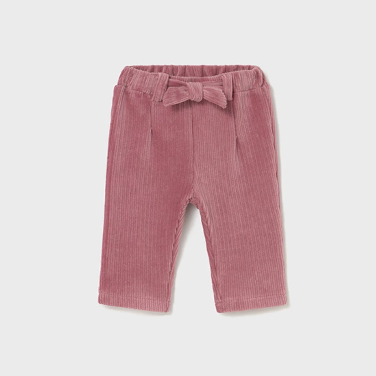 Mayoral pihe-puha és extra rugalmas vastagabb kordbársony hatású szuperjó nadrág, nagyon rugalmas anyagból, gumírozott derékrésszel, elöl a derekán masnis díszítéssel. Kényelmes és meleg viselet őszre-télre.