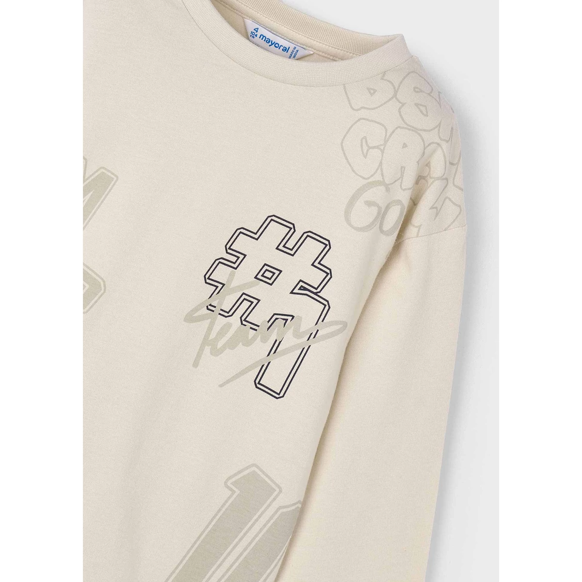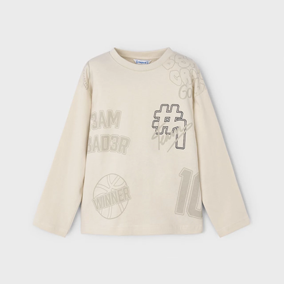 | Mayoral elöl sportos feliratokkal és mintákkal díszített hosszú ujjú felső , puha pamutból készült, kényelmes és sportos viselet őszre-télre. | |